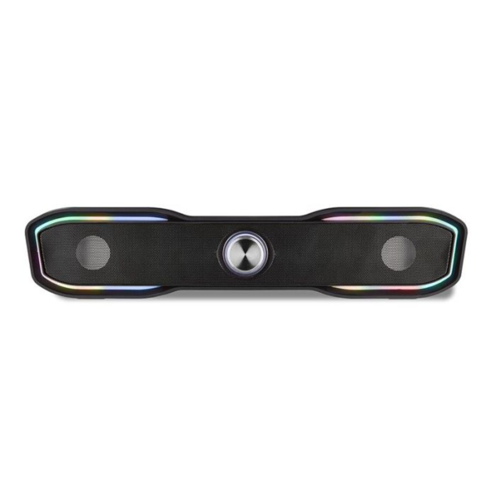 Immerse yourself in superior sound with the Akai Bluetooth Gaming LED Soundbar. With 2 x 5W full range speakers and colourful LED lights you can discover the ultimate gaming atmosphere or create a true cinematic experience in the comfort of your own home. For added convenience when you’re busy gaming, use the touch control feature to turn the lights on/off and adjust the speaker volume. Stream your sound seamlessly using any Bluetooth device via the latest Bluetooth 5.0 with an impressive 10m transmission distance, or connect via the 3.5mm audio jack to take control over the party playlist. Get straight into your gaming with easy set-up – simply plug in your new soundbar and instantly enhance your experience. And, this space-saving soundbar measures at H8.7 x W44 x D7.3cm for easy portability around the home.