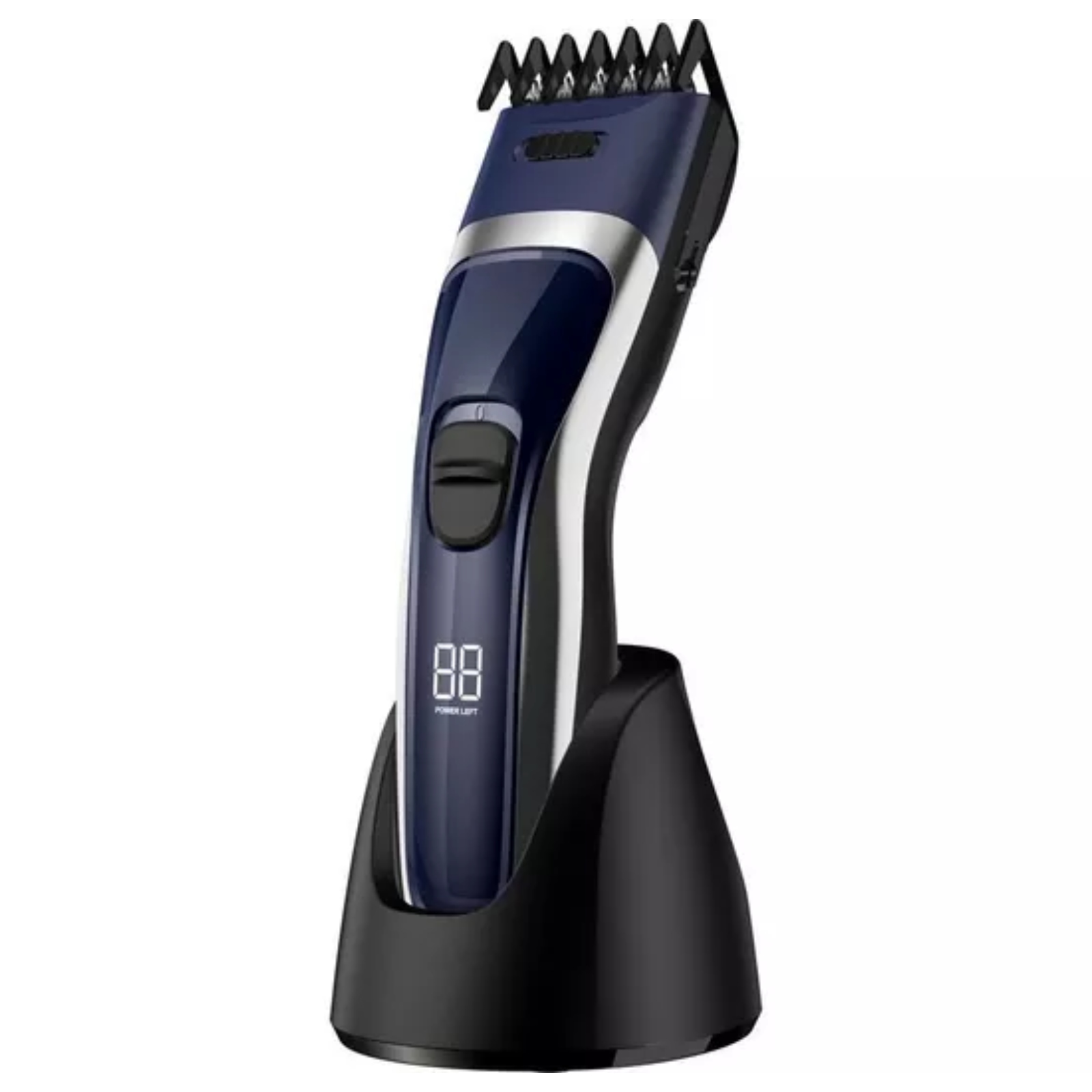 Create a professional quality cut at home with the Carmen Signature Men’s Cordless Hair and Beard Trimmer. Features 10 cutting lengths from 3-32mm to suit every style, providing ultimate versatility for face and body grooming. The advanced, rechargeable battery provides up to 60 minutes of cordless runtime, for a great shave without restrictions. Superior performance stainless steel blades provide long-lasting sharpness for a pristine finish every time. Its ergonomic and slim design is the perfect fit for your hand so you can comfortably and efficiently trim your face or body. The large LED display shows a clear view of the battery level so you know when it needs charging, with easy-to-read numbers for added convenience.