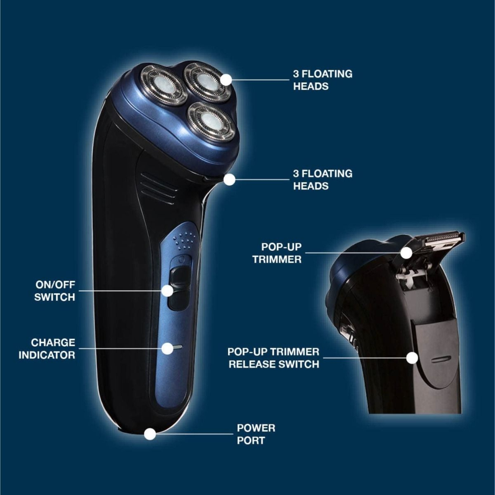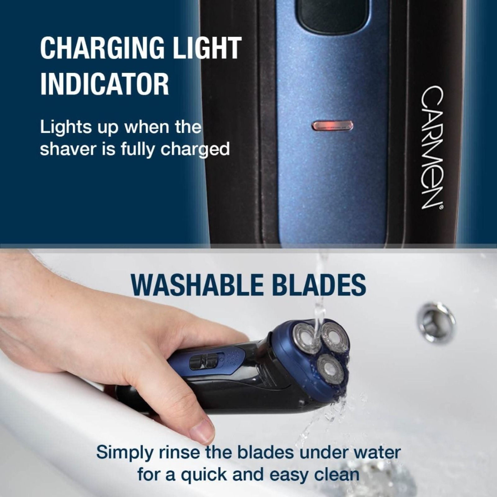 Give the perfect shave with this Carmen Men’s Signature cordless triple head flex and pivot shaver. Featuring multi-flex pivot rotary blades, the dual track blades and flex cutter work together to help capture every hair, which ensures an efficient close shave. This men’s shaver includes a pop-up precision trimmer to help take care of sideburns, creating clean and defined lines around your jaw or trim back longer hairs before a full shave. The rechargeable battery provides up to one hour of continuous use from a single charge, giving you the perfect restriction free shave. This beard trimmer features a charging indicator light, so you know when it has been fully charged and ready to be used again without the cord. The blades can be washed by running under some water for quick and easy cleaning. An ergonomic design fits perfectly in your hand so you can comfortably and efficiently shave.