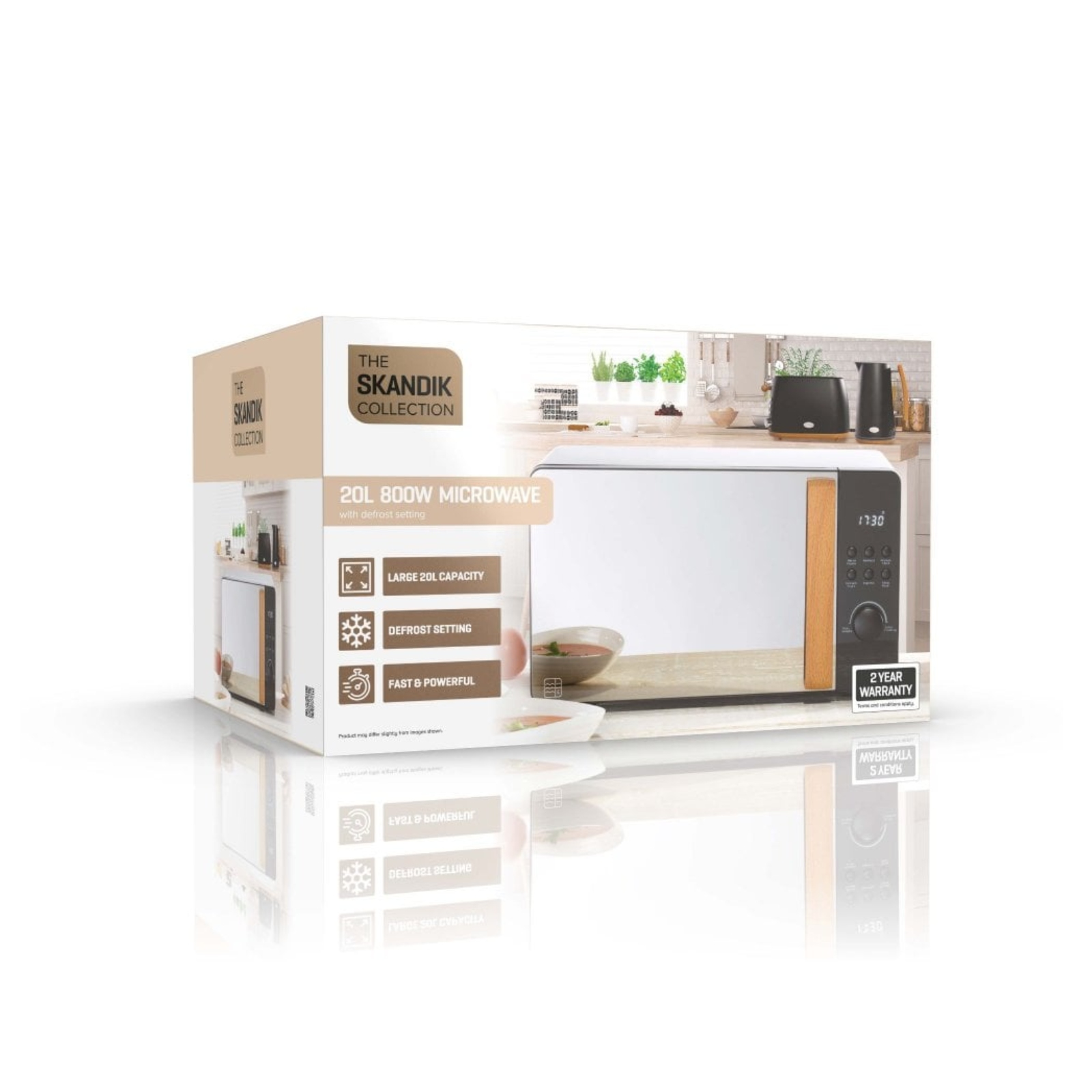 Our black 20L digital microwave is sleek looking and packed full of handy features to make your life in the kitchen easier. First of all, it’s black and silver design makes this microwave really look the part, and the simple colours mean that it’s sure to look great in almost every kitchen. When it comes to the functionality, the microwave will allow you to cook food for up to 60 minutes and carries 5 different power levels – so you’re in complete control meaning you can cook the perfect meal every time. On top of this, the appliance has 8 pre-programmed settings for heating foods such as potato, rice, pasta and more, so you can cook perfectly at just the touch of a button. It’s not just cooking too, if you’re in a hurry, you might find the built-in defrost function comes in useful too! If you’re looking for a microwave that’s easy-to-use, packed full of handy features and sure to look great next to your other appliances, then look no further than this Daewoo 20L black digital microwave.