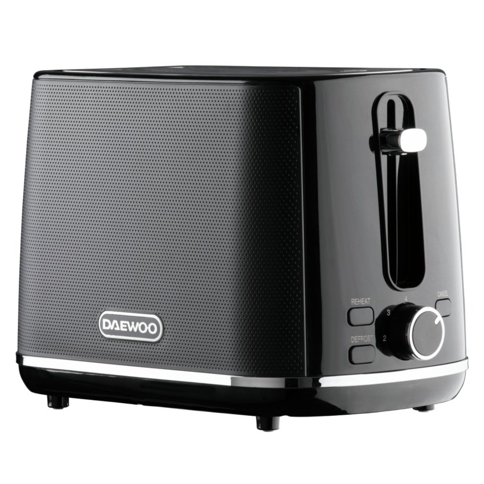Discover the new Daewoo Stirling collection 2-slice toaster, where elegant design meets practical functionality. This toaster is a sleek addition to any kitchen, featuring a subtle yet stylish textured finish. Compact in size, it’s perfectly suited for any kitchen, whether you’re preparing breakfast for the family or a quick snack for yourself. It comes equipped with convenient auto-centre and anti-jam functions, along with a high lift handle, making the retrieval of your toast or bagels effortless and safe. The toaster’s 930W element ensures your bread is toasted evenly, and with 7 browning settings, you can tailor your toast to your exact preference, from lightly crisped to deeply browned. It’s versatile too, offering defrost, cancel, and reheat functions for all your toasting needs. Maintenance is simple with its removable crumb tray, and the integrated cord storage keeps your countertop neat.