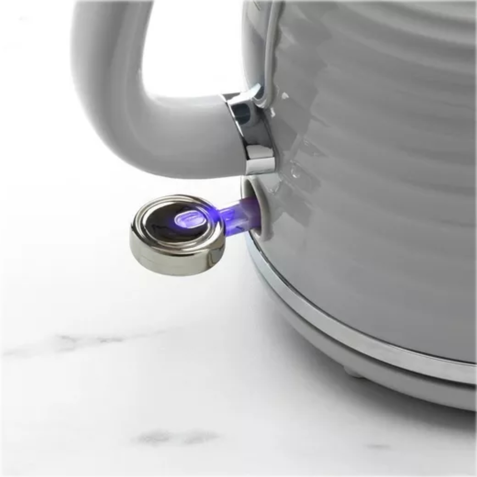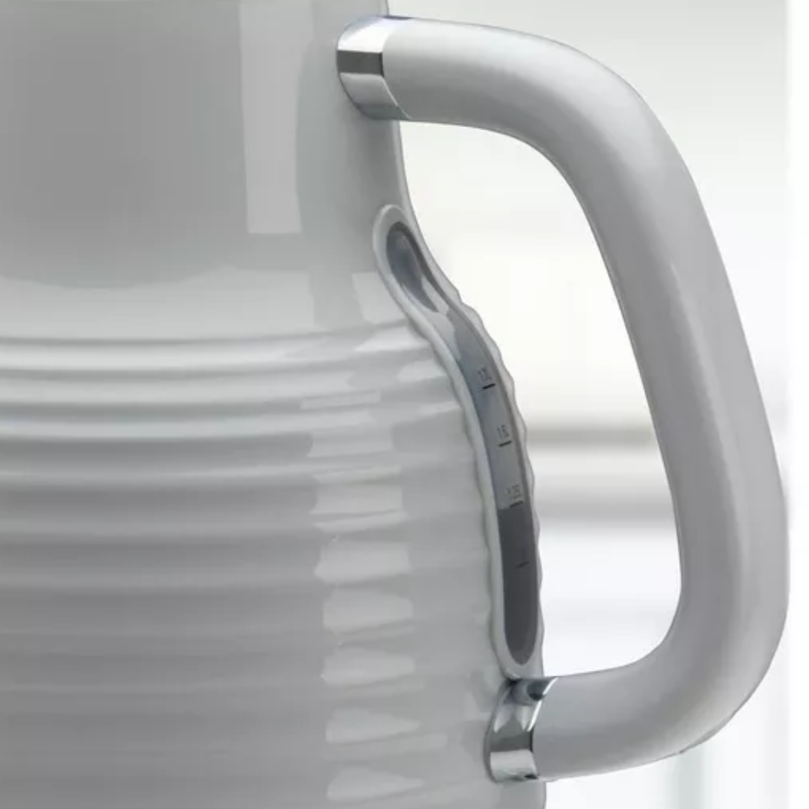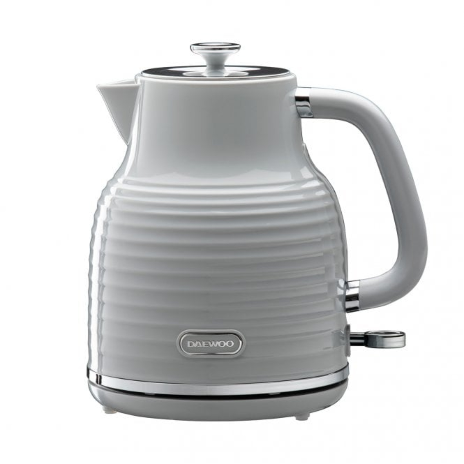 Elevate your kitchen with the Daewoo Grey Sienna 1.7L Jug Kettle, a harmonious blend of timeless design and modern functionality. Boasting a traditional lift-off lid and a textured body, this kettle exudes elegance while offering seamless 360° rotation on its cordless base, catering to both left and right-handed users. The 3kw powerful element ensures swift boiling, while the 1.7 litre capacity, clear water fill indicator, and power-on LED indicator enhance convenience and offers up to 7 cups from each fill. The removable limescale filter, automatic shut-off and boil dry protection ensures safety, whilst also extending the life of your kettle!
