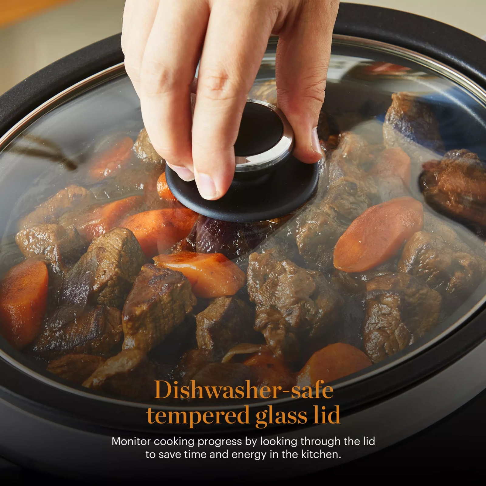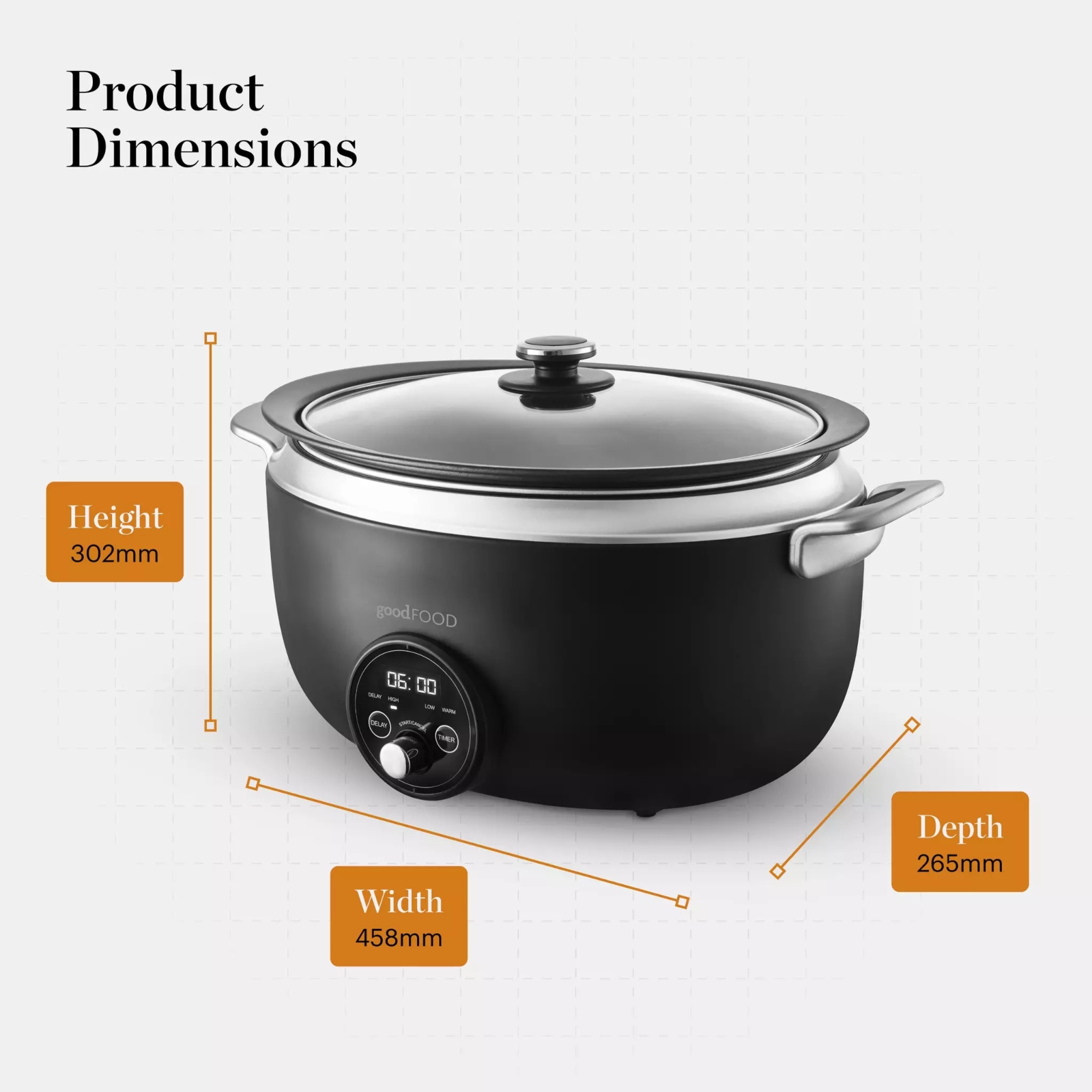 Get the most out of your kitchen with this 6.5L Slow Cooker from Good Food in partnership with Tower. Specially designed to be used with the vast Good Food recipe library, it is perfect for budding chefs who want to test their skills and creating family sized portions. The removable aluminium pot allows for easy serving and lets you brown off food on the hob prior to cooking to create more flavoursome meals. You can create full family meals thanks to the 6.5L capacity, whilst the tempered glass lid helps to lock in moisture and nutrients for meals that are packed full of flavour, whilst you can also monitor the cooking process without having to take off the lid. Cool touch handles provide added safety, whilst the LED Digital display makes it simple to cycle through the high, low and keep warm functions for seamless and efficient use.