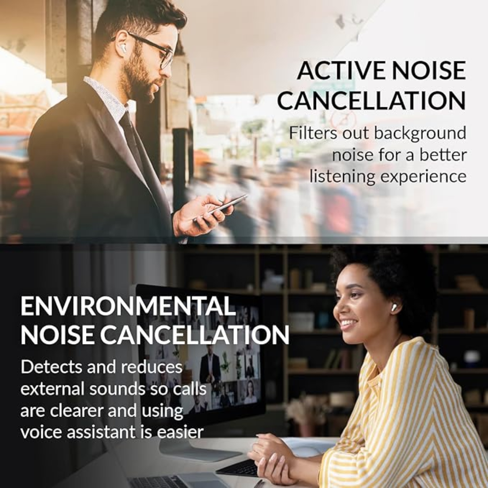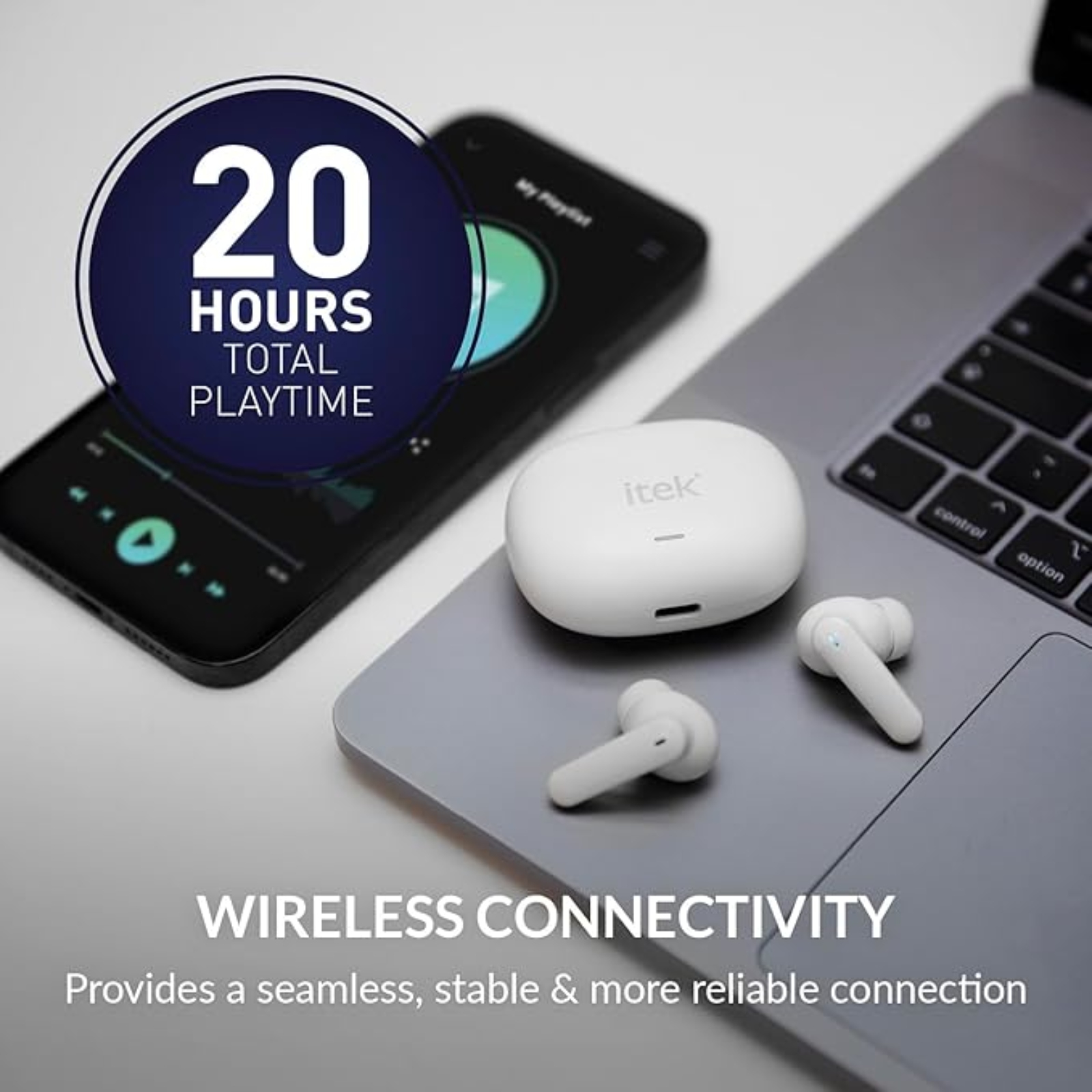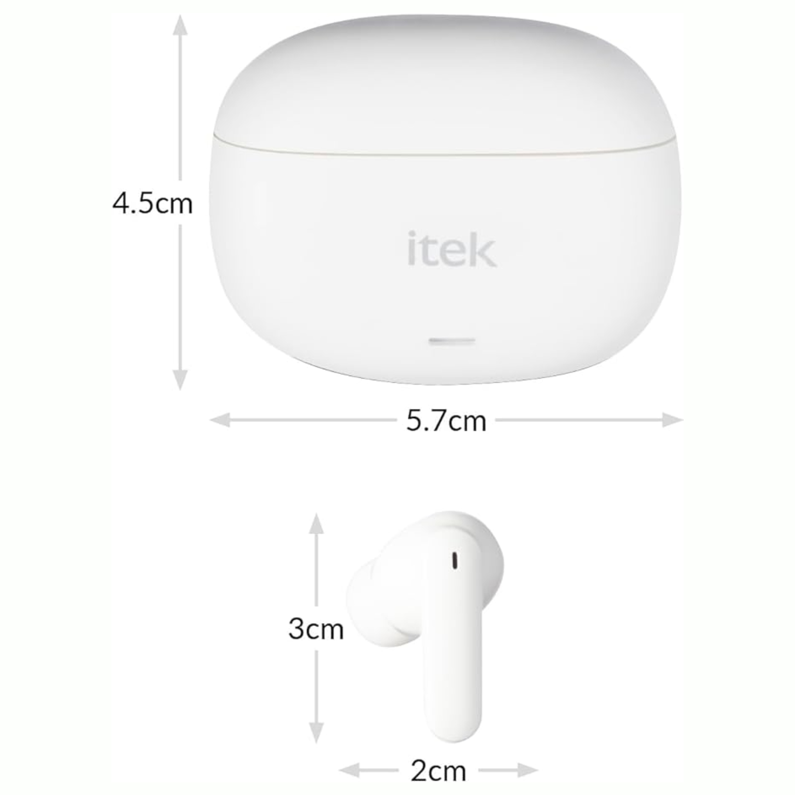 Enjoy music, podcasts, and more on the go with these iTek Core I59005WHT white wireless noise cancelling earbuds with USB-C charging case. Bluetooth 5.3 technology provides seamless audio streaming and 10m transmission distance for a more secure connection, wherever you are. Mono mode lets you switch from using either earbud independently or back to using them together. You can also easily connect back to your device as the earbuds remember the last device used.