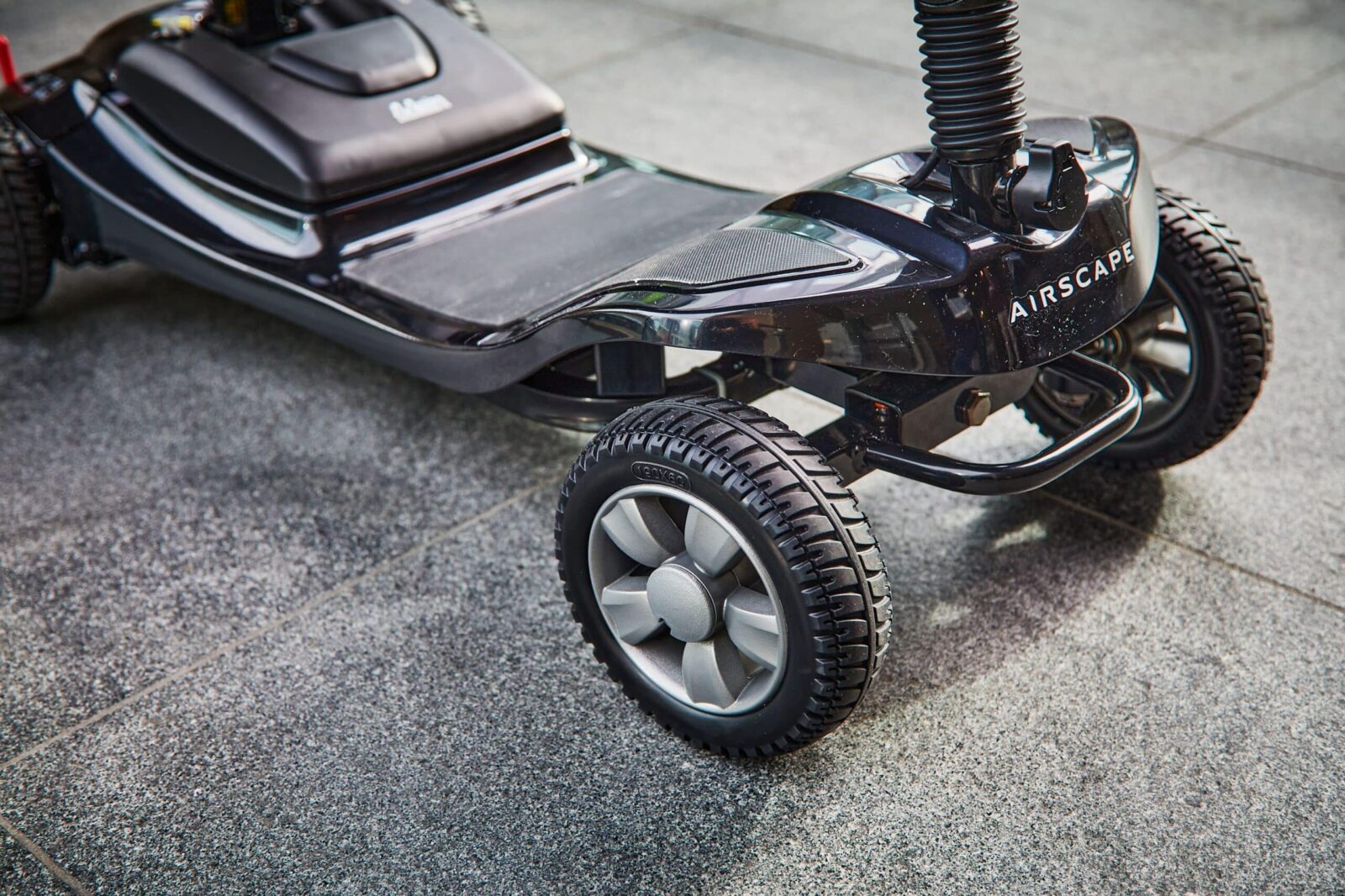 When disassembled, the heaviest part of the scooter is its front section, which weighs just 14.5 kg (32 lbs), allowing users with limited strength to easily lift the scooter into a car boot. This makes the Airscape an excellent choice for those who are looking for a compact, travel-friendly scooter. Additionally, the Lithium-Ion battery provides optimum durability, rapid charging times, and superior performance. It is lighter and smaller than traditional scooter batteries, and can be removed for off-board charging, perfect for users who store their scooter outside or in a garage.