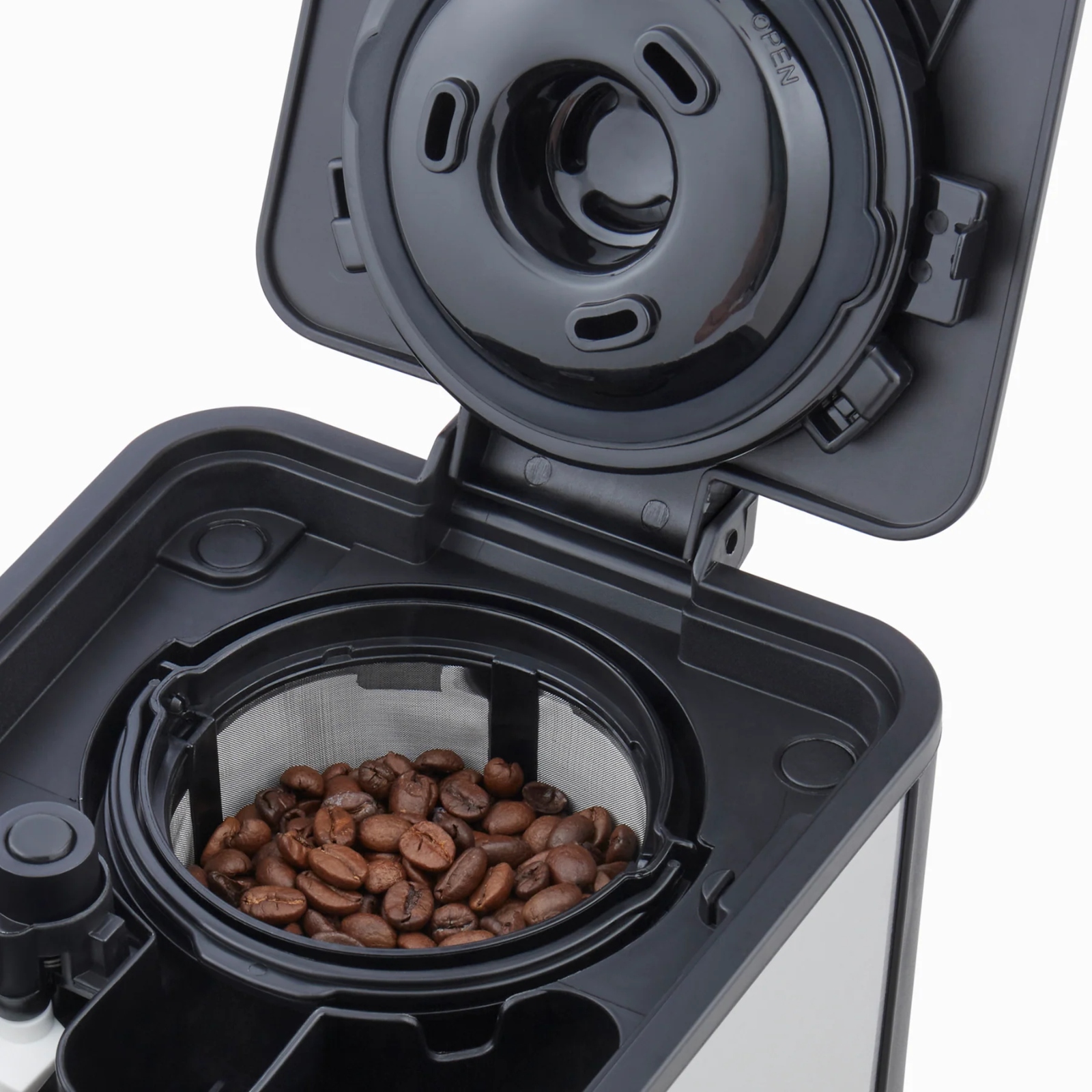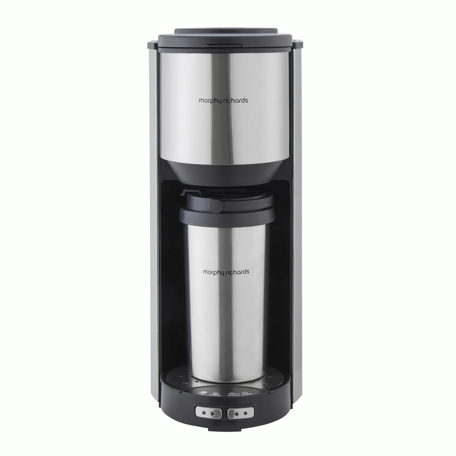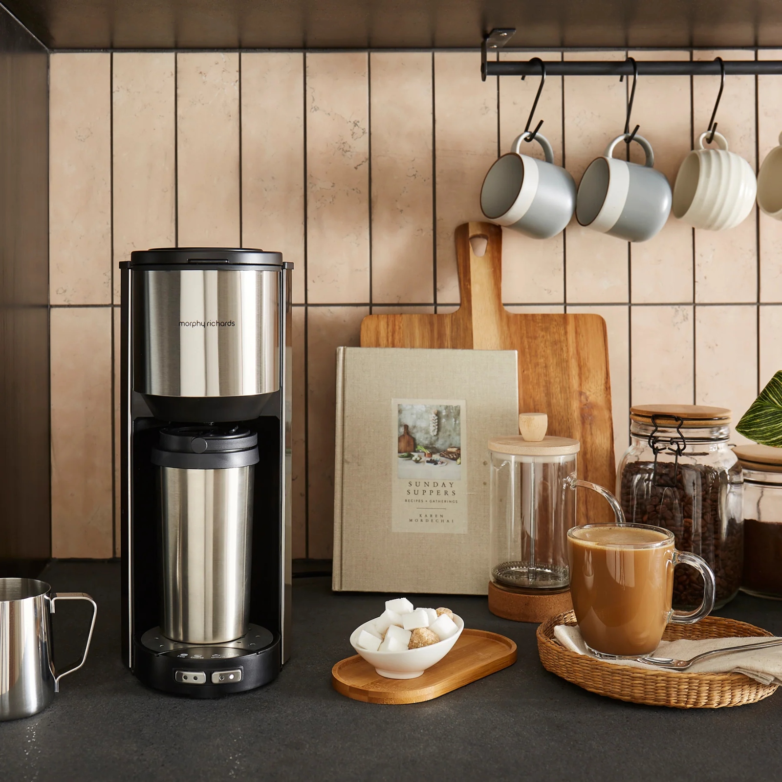 Perfect for drip coffee lovers, elevate your at home coffee experience with the bean to cup Tazza Pour n’ Go Single Cup Coffee Machine. The Tazza machine actually comes with its very own travel mug! Thanks to the quick brewing time and one touch operation, get your morning brew in no time, plus the included travel mug means effortless coffee on the go! Made with a built-in grinder, choose between fine, coarse and ground coffee for your perfect brew. Ideal for smaller kitchens, its compact design takes up little kitchen countertop space, while the removable and adjustable drip tray provides customisable yet easy maintenance. So, upgrade your coffee experience today!