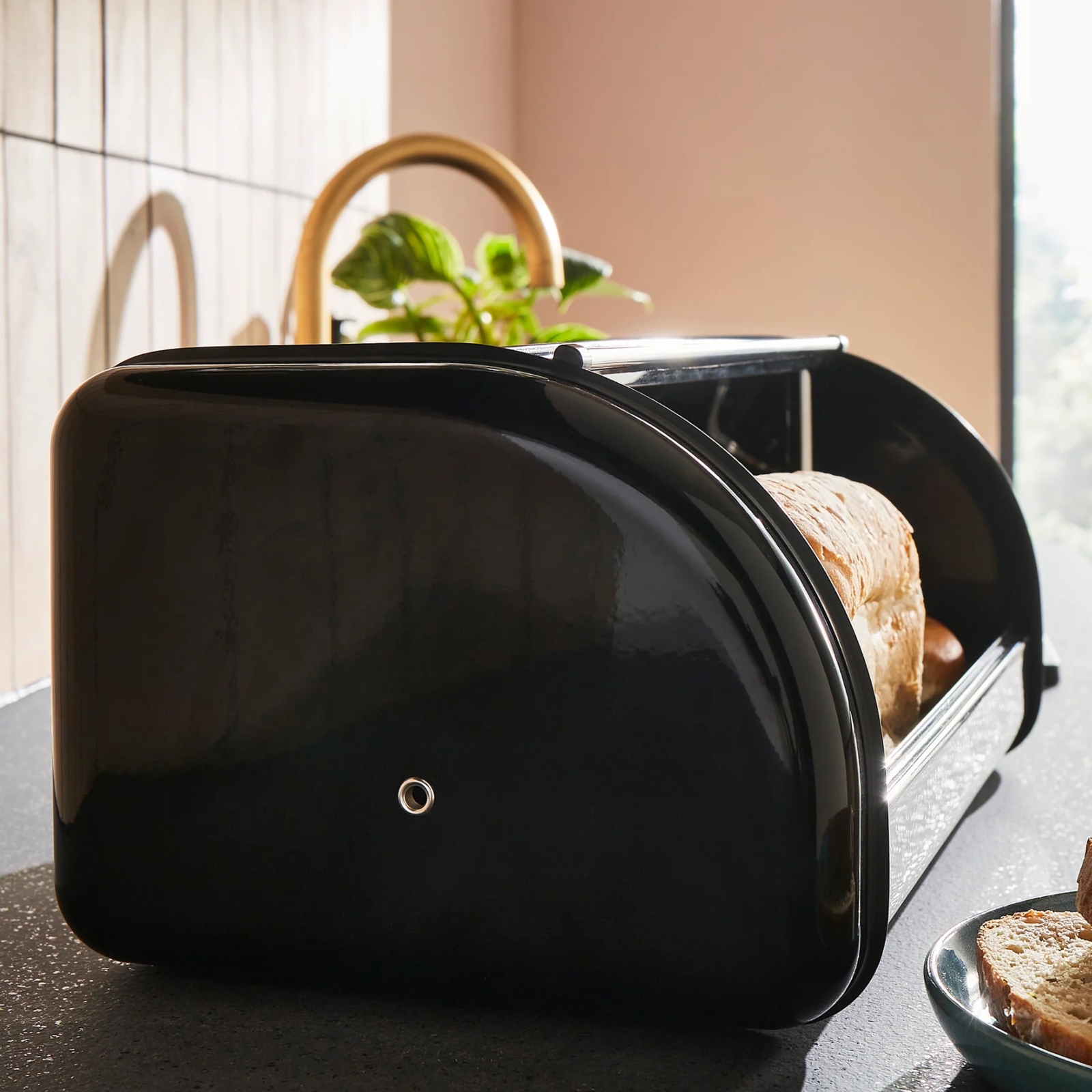 Introducing the Large Roll Front Bread Bin, designed for the ultimate convenience. Made from food safe steel and designed with a front roll up lid with a magnetic seal, perfect for keeping your baked goods fresh for a long period of time. With a generous capacity of 2.3 litres, it easily fits loafs, bread rolls, and crumpets all at the same time! The stylish finish adds a touch of elegance but also durability as it is designed from carbon steel and stainless steel for longer lasting use. Plus, simply wipe the cream bread bin with warm and soapy water and dry thoroughly before use to maintain its quality finish.