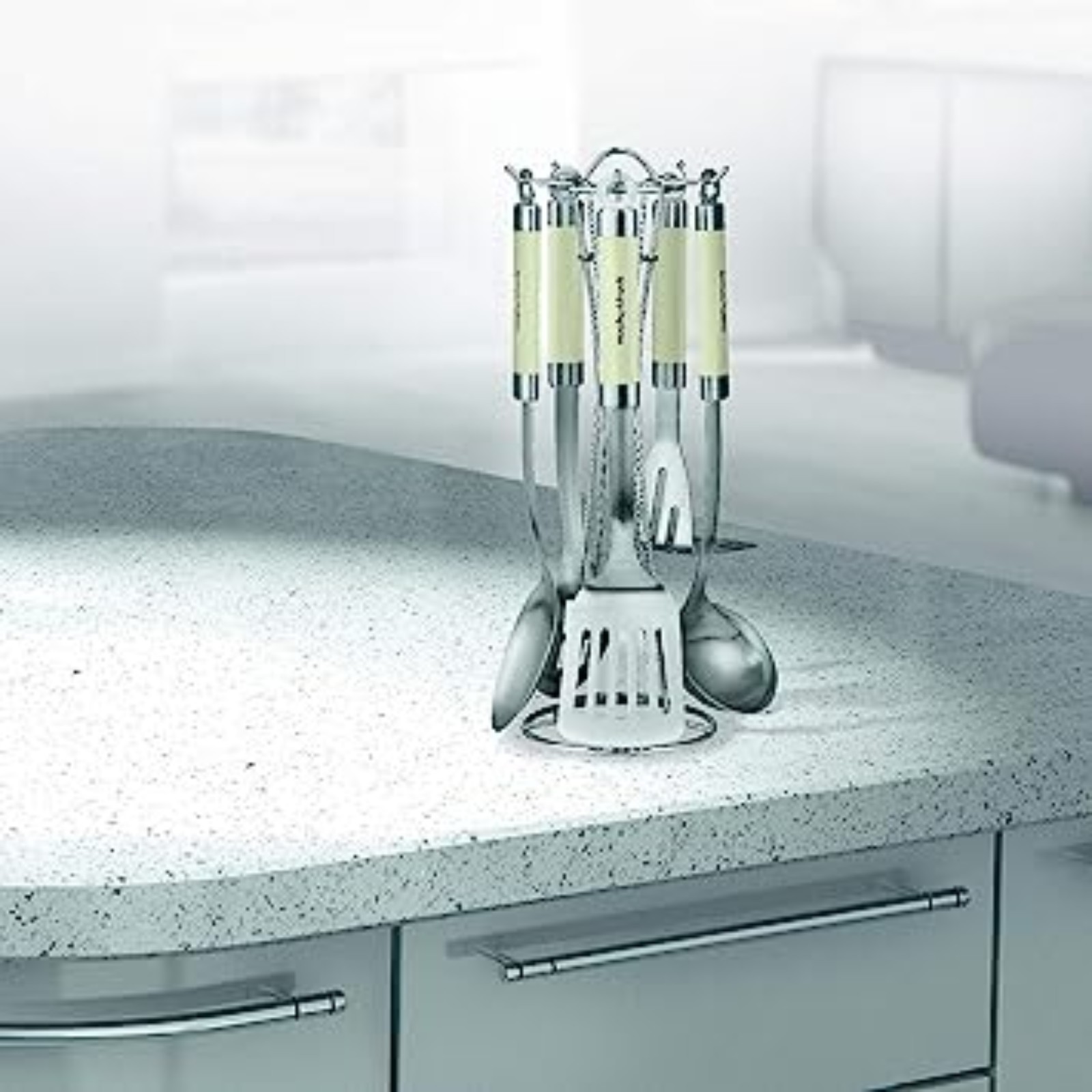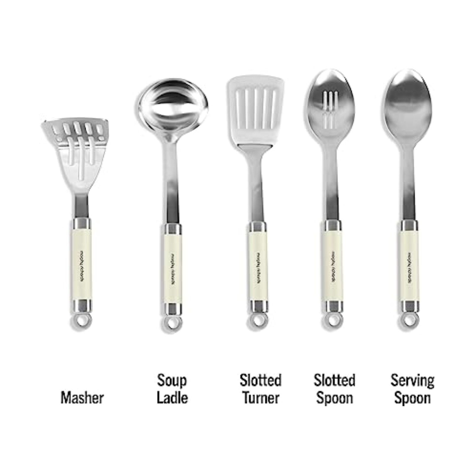 Like the rest of the Accents collection, this kitchen tool set is made from high-grade stainless steel and has matching coloured accents. Included in the set are all the main everyday items you need in the kitchen: a masher, spatula, ladle, slotted spoon and solid spoon. Each one features oval tube-design handles and attaches neatly to a smart slim stand.