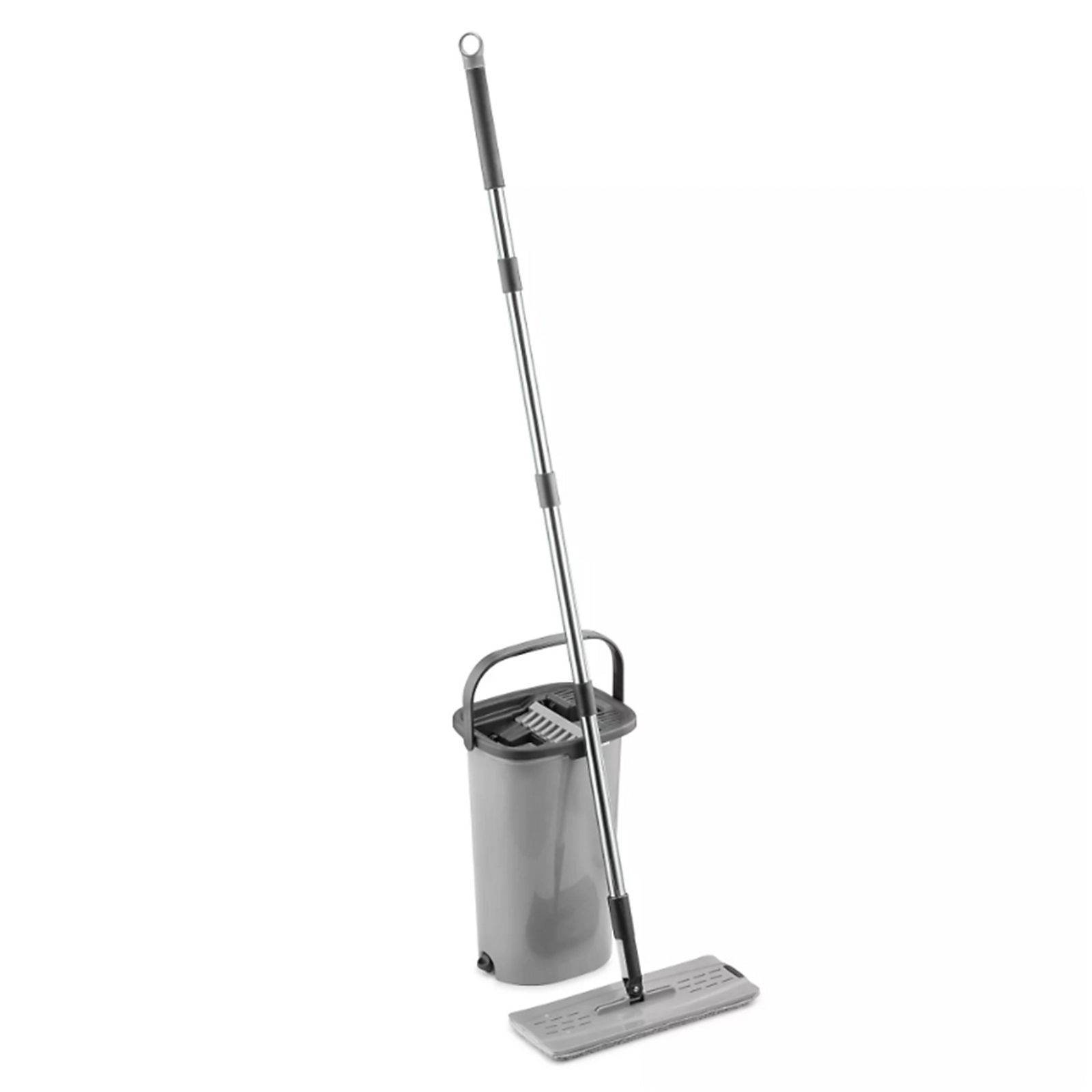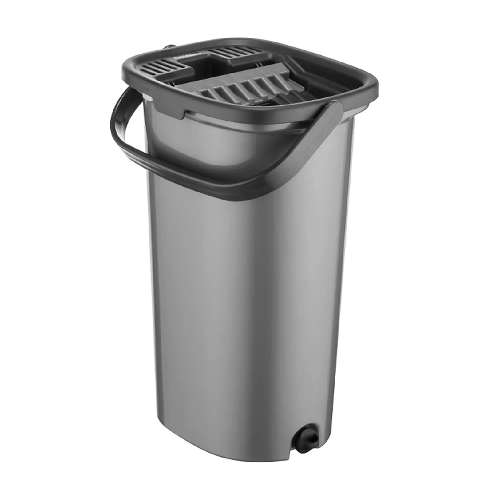 This bucket comes complete with a dirty water container that is removable, allowing you to dispose of dirty water easily, giving you the most efficient clean possible. Its large surface area of the flat mop makes light work of larger areas, with a microfiber pad that cleans and collects dirt effortlessly. For continued, long-lasting use, the Microfibre pad can be used in the washing machine. The mop has a 4 part handle, which can be stored inside the bucket as an efficient compact storage system. Has a spring loaded kick back mechanism on the head, allowing you to easily ring out the mop with ease, whilst the bucket has a drainage plug to make it simple to empty once you have completed mopping without any spillages.