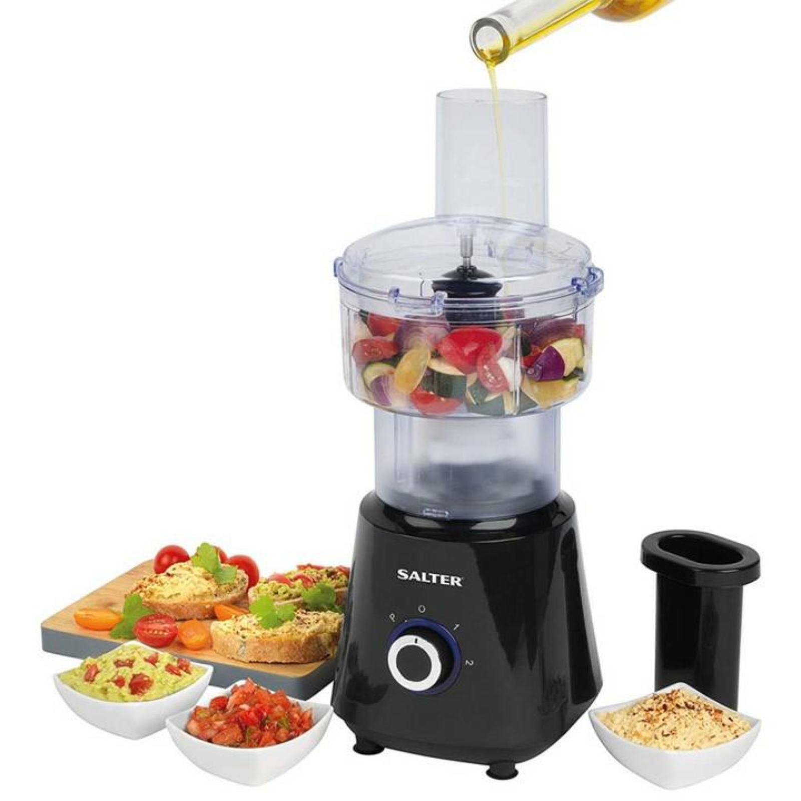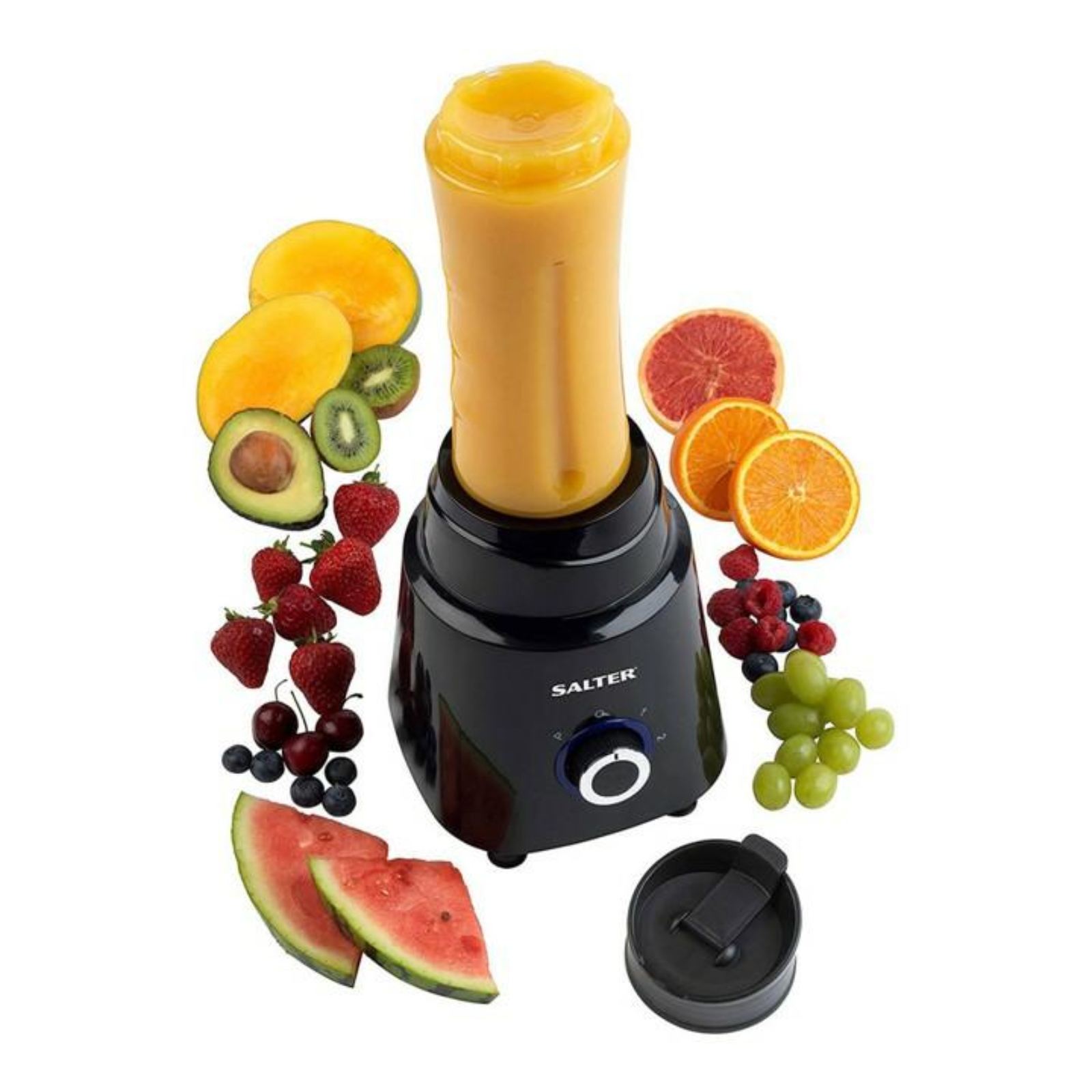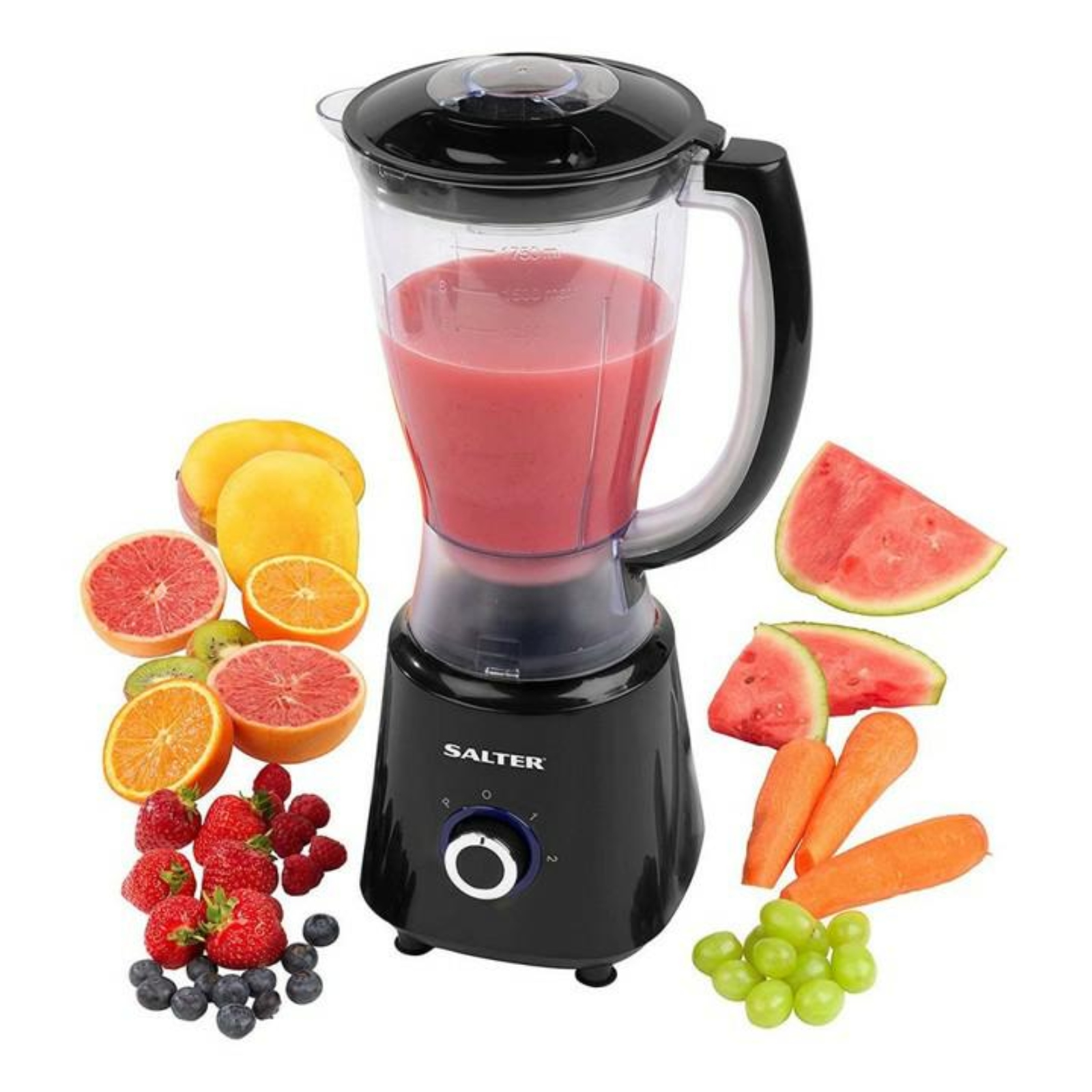 The Salter Deluxe Blender Set is a versatile appliance that can blend, chop, slice, and shred a variety of ingredients. It has a capacity of 1.5 litres and is powered by 240V. The blender comes in a sleek black colour and has three-speed settings, along with pulse control, to cater to different blending requirements. The blender is made of high-quality plastic material and has a multi-purpose blade that can puree, fruit, juice, and smoothie with ease. It is BPA-free and has dishwasher-safe components for easy cleaning. The Salter Deluxe Blender Set also includes a pulse control feature, making it a great addition to any kitchen.