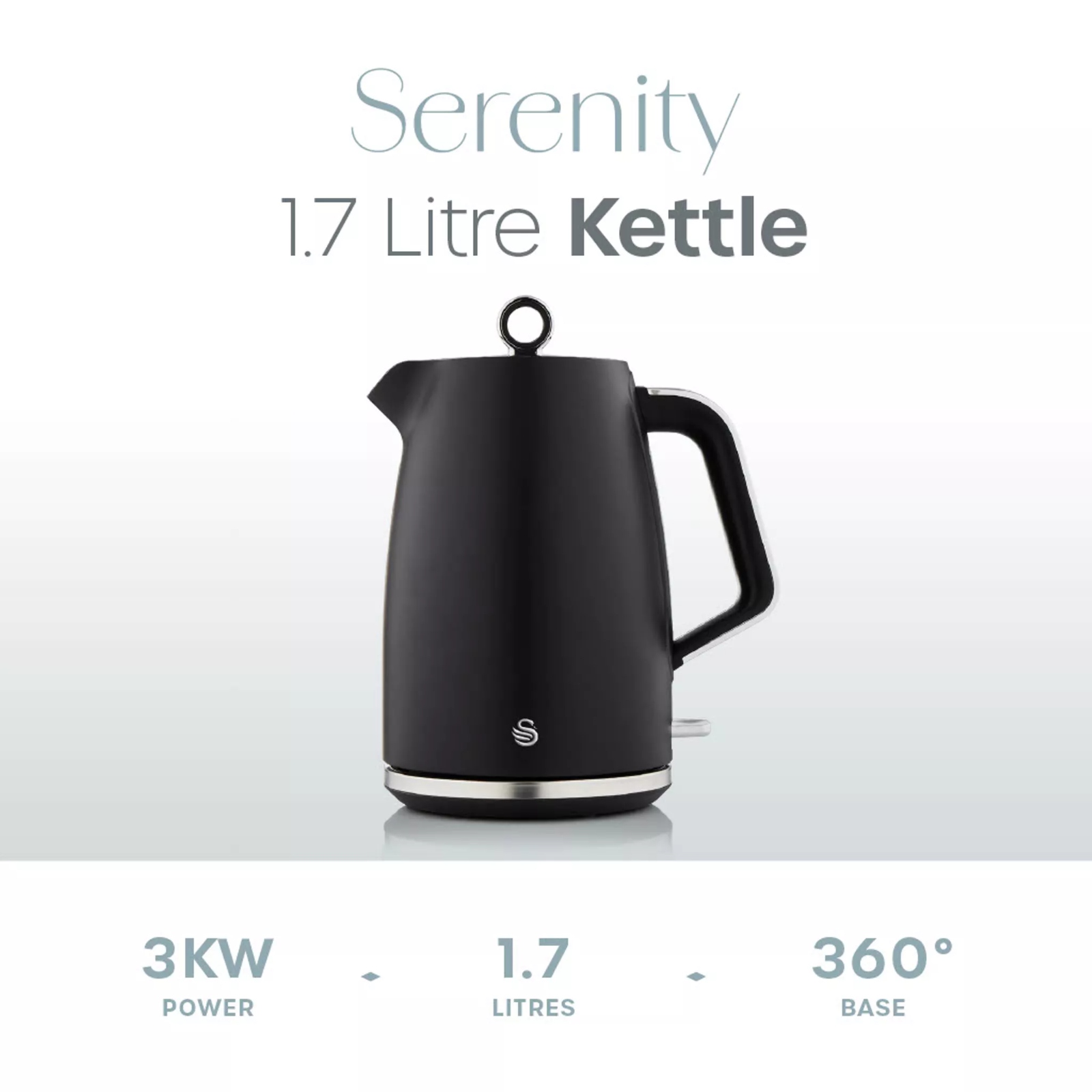 The 3kW of power in this cordless kettle boils one cup in under 60 seconds. Make the perfect brew in minutes, ready to start or wind down from your busy day. This Swan Elegance electric kettle can make up to 7 cups from a single boil. Perfect for serving up a delicious cup of tea, coffee or hot chocolate to your family and friends. Whether you’re left or right handed, the 360-degree rotating base has been designed to let you easily pick the kettle up. The Serenity kettle also comes with non-slip feet for added stability, while the integrated cord storage keeps your kitchen worktop neat and tidy. Pouring water has never been easier thanks the perfectly designed spout, which prevents spilling to keep your kitchen worktop tidy.