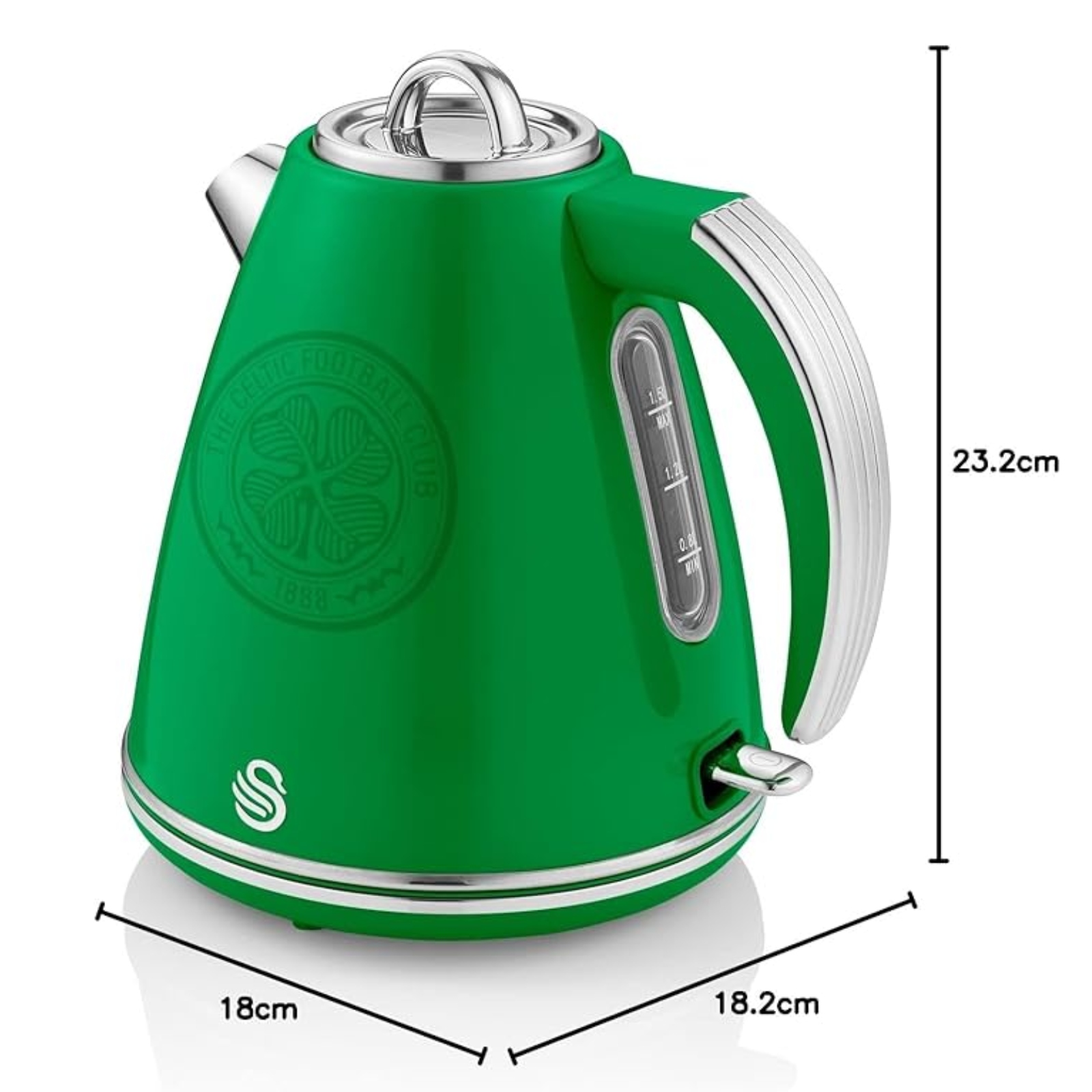 Introducing Swans first Celtic branded Kettle. Boil water faster than ever with this powerful 3000W kitchen must-have. The concealed heating element and 360-degree rotational base ensure even and efficient heating, while the boil dry and overheat protection safeguards your appliance against damage. Start the day with a trusted, reliable kettle by your side. With a 1.5L capacity, this handy kettle is perfect for larger households or busy offices. Plus, the cord storage keeps your countertop tidy. The transparent water gauge ensures you always know how much water is left in the kettle. It also holds a stainless steel body, a rotational base for ease of use and a water gauge so that you always know how much water is left. Plus, it comes with boil dry and overheat protection for your safety. Make tea or coffee quickly and easily with the support of the Celtic Team on your side.