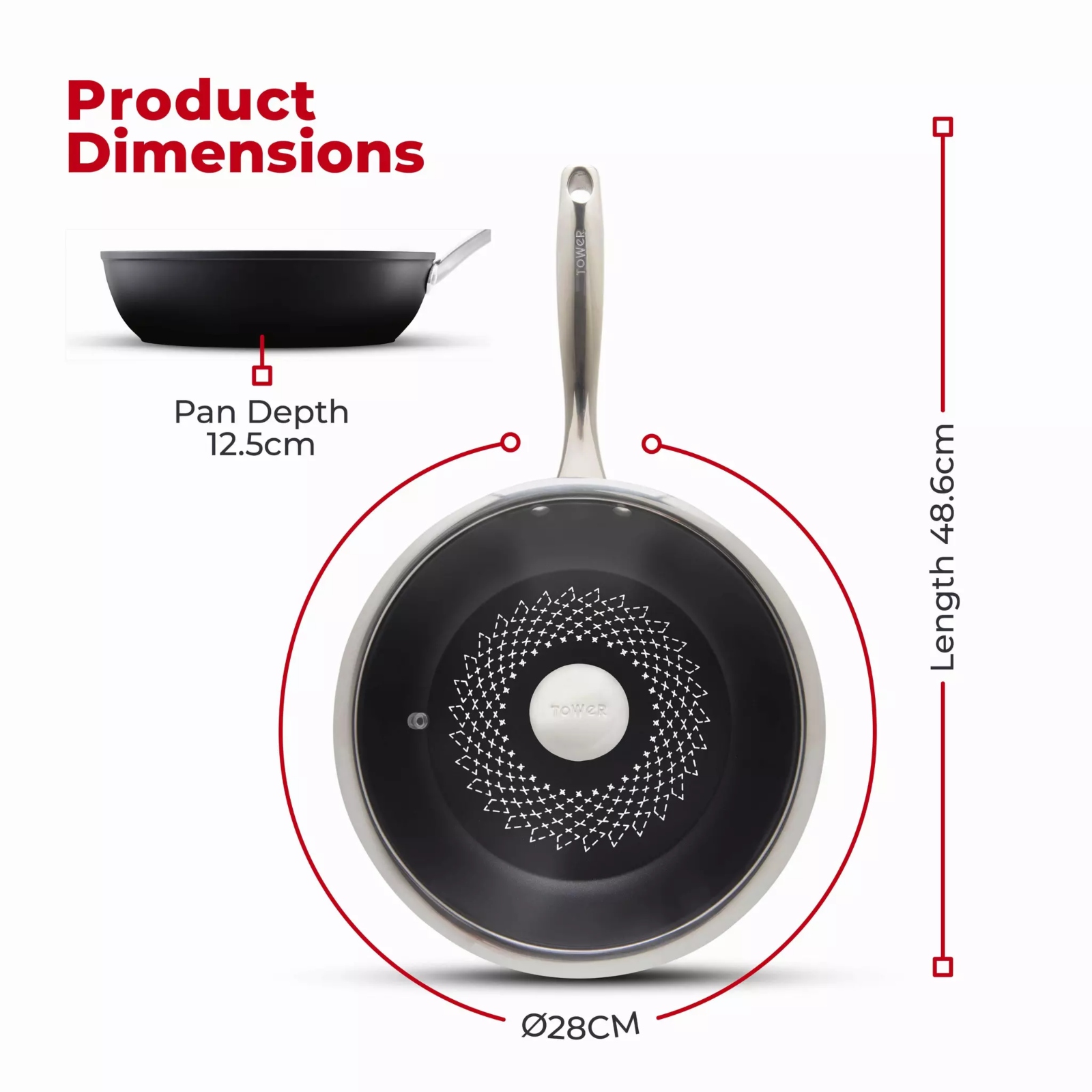 Tower T900308 Smart Start 28cm Aluminium Multi-Pan With Glass Lid