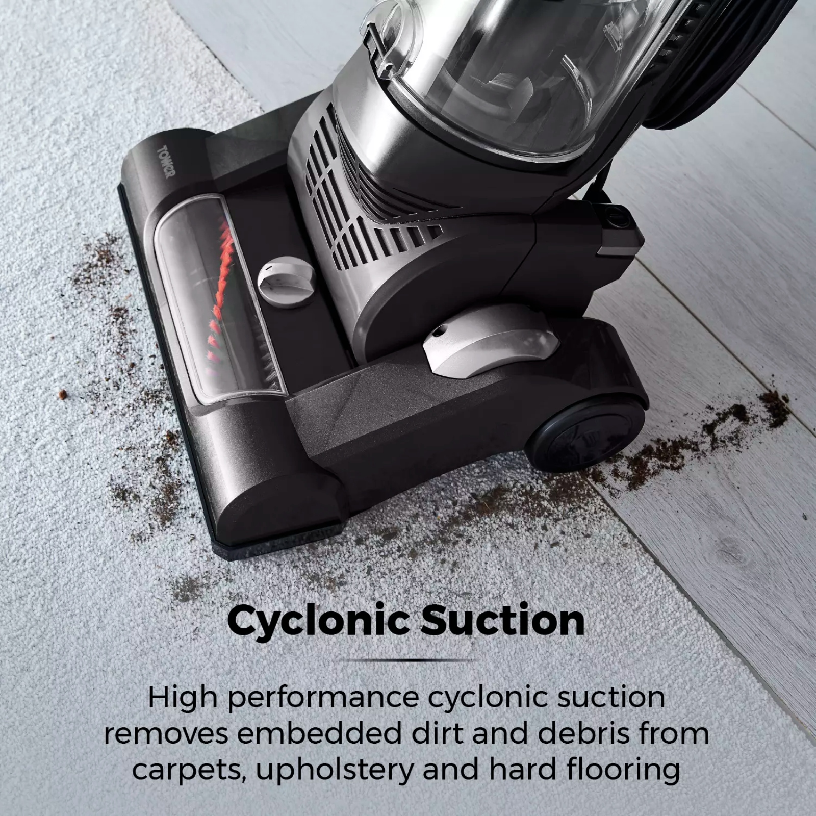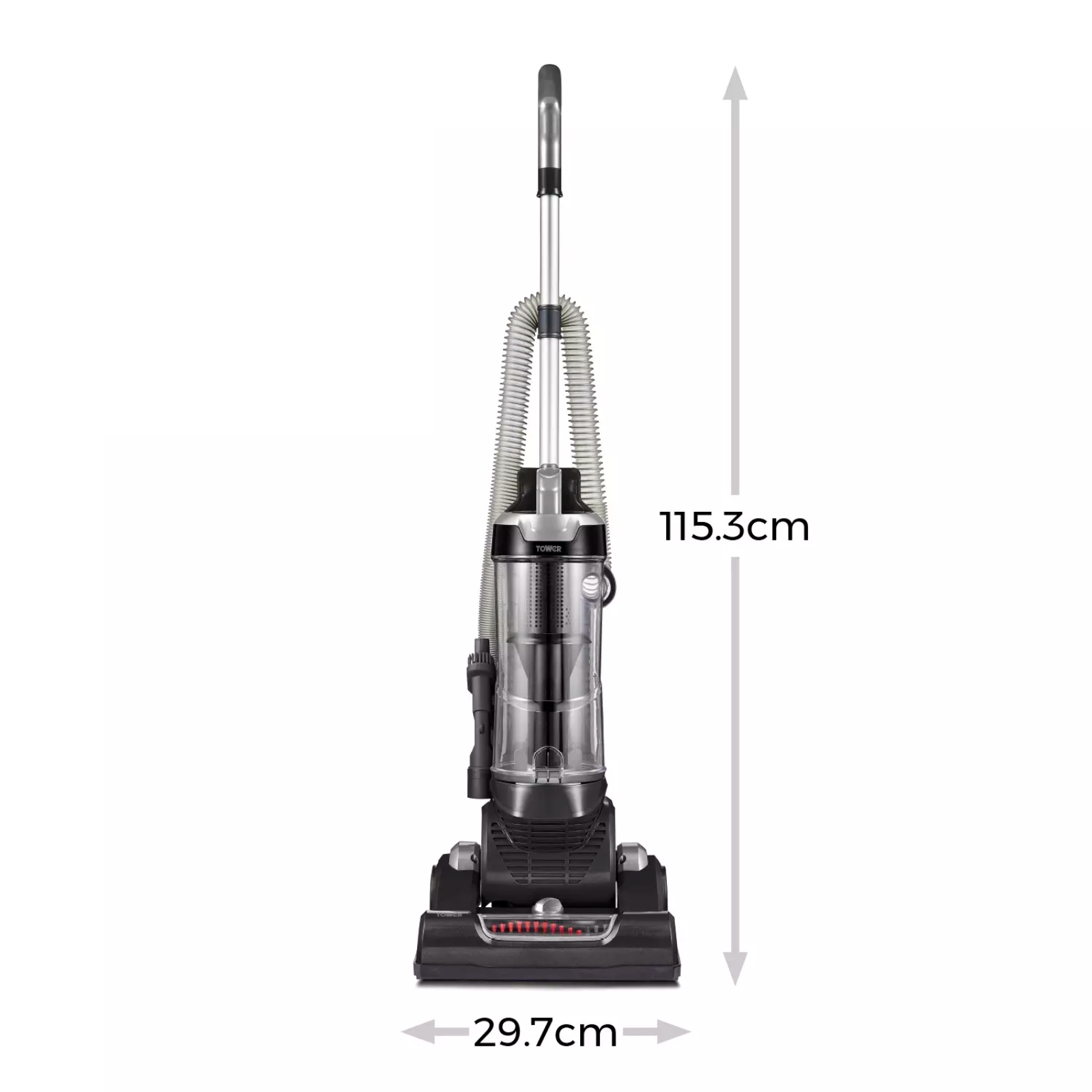 Providing an efficient clean-up throughout the home, this Tower TXP30PET pet upright upright vacuum cleaner features cyclonic suction technology to provide an enhanced vacuuming performance. The 750W motor uses 100W of suction power to easily retrieve unwanted dust and dirt, storing it in the large 2.5 litre detachable compartment until it requires emptying. The HEPA filtration system traps a larger number of small particles compared to other vacuum cleaners, giving you better and more thorough cleaning results throughout your home. The 6 metre cord length offers extra reach, leaving you free to vacuum around a number of rooms without the need to constantly change to other wall sockets.