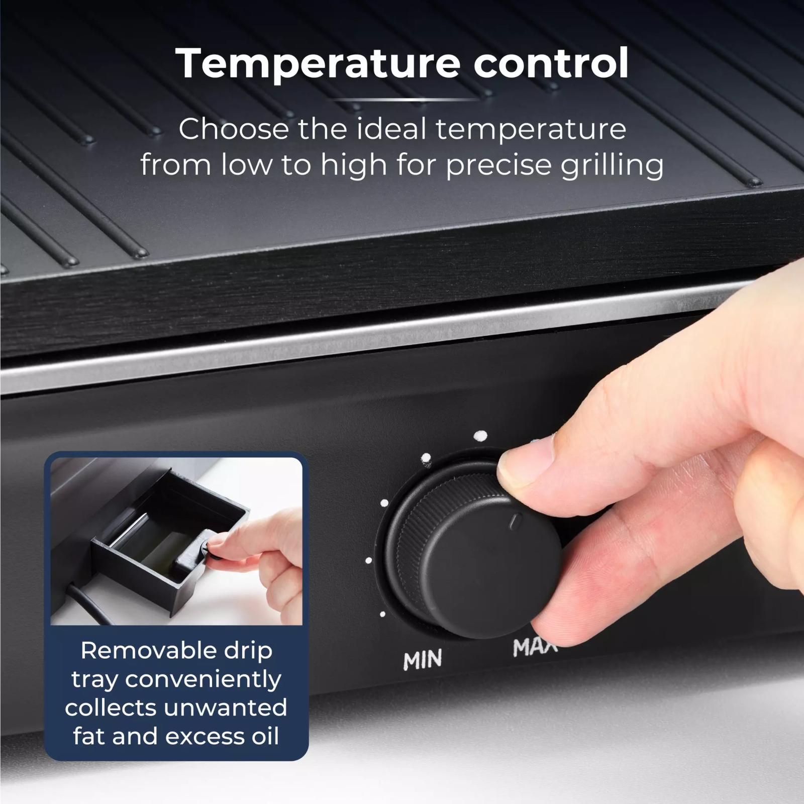 Serve up authentic barbeque-grilled burgers, chicken and vegetables outside or indoors with Tower’s standing electric BBQ grill. The freestanding grill can be easily set up outdoors for garden parties, camping and caravanning, or transformed into an indoor table grill to enjoy delicious, barbequed dishes from the comfort of your dining room. Its non-stick plate is 3x stronger than conventional coatings and delivers quality grilled taste and texture, providing abrasion resistance and effortless cleaning with its premium non-stick coating for heathier cooking. Featuring quick heat up and 3 adjustable temperatures, you can achieve efficient results fast with less smoke and no flames. Its large surface area lets you grill up to 8 chicken breasts, as well as paninis, toasties and more for added versatility. Perfect for a gathering with friends and family. serving enough portions for family and friends in a one go. Grilled food is made healthier using its ridged grill plate to drain away fats and grease, with fat channelling hole and drip tray to extract excess juices during cooking. The ridged grill plate, drip tray, steel shaft and blades can all be removed for an easy clean-up.