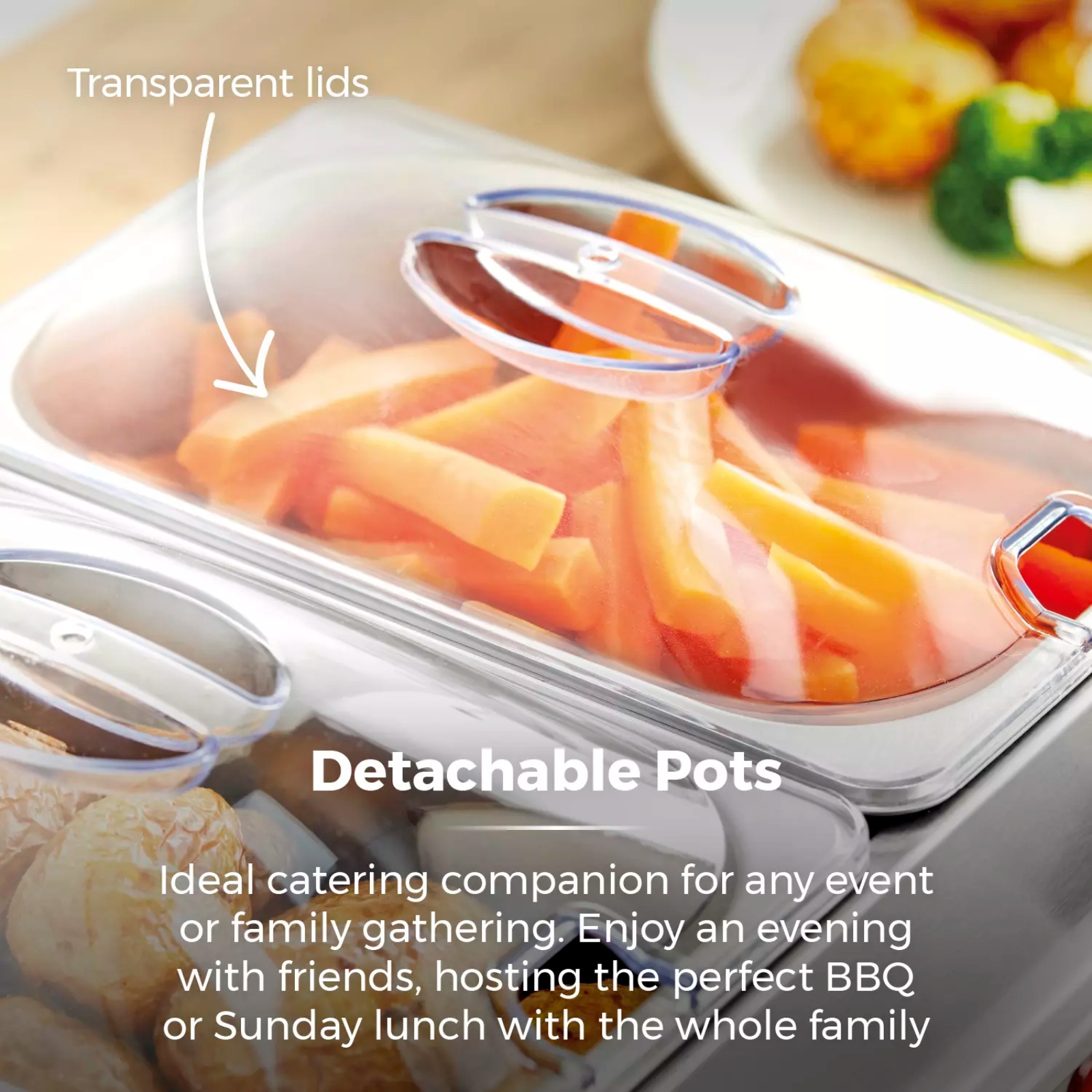 This buffet server is the perfect catering companion for any event or family gathering. Whether you are hosting an evening with friends enjoying Christmas lunch with the family or entertaining guests at a summer BBQ, this appliance offers the perfect helping hand to keep your food warm and fresh. The server features three high quality 1.5 litre non-stick trays with lids to keep your food warm over long periods of time. With a temperature range from 70 to 120 degrees, you can choose the setting that is best for the food that you are serving. The cool touch handles mean that the buffet server is easy to manoeuvre, while the removable washable trays take the hassle out of cleaning.