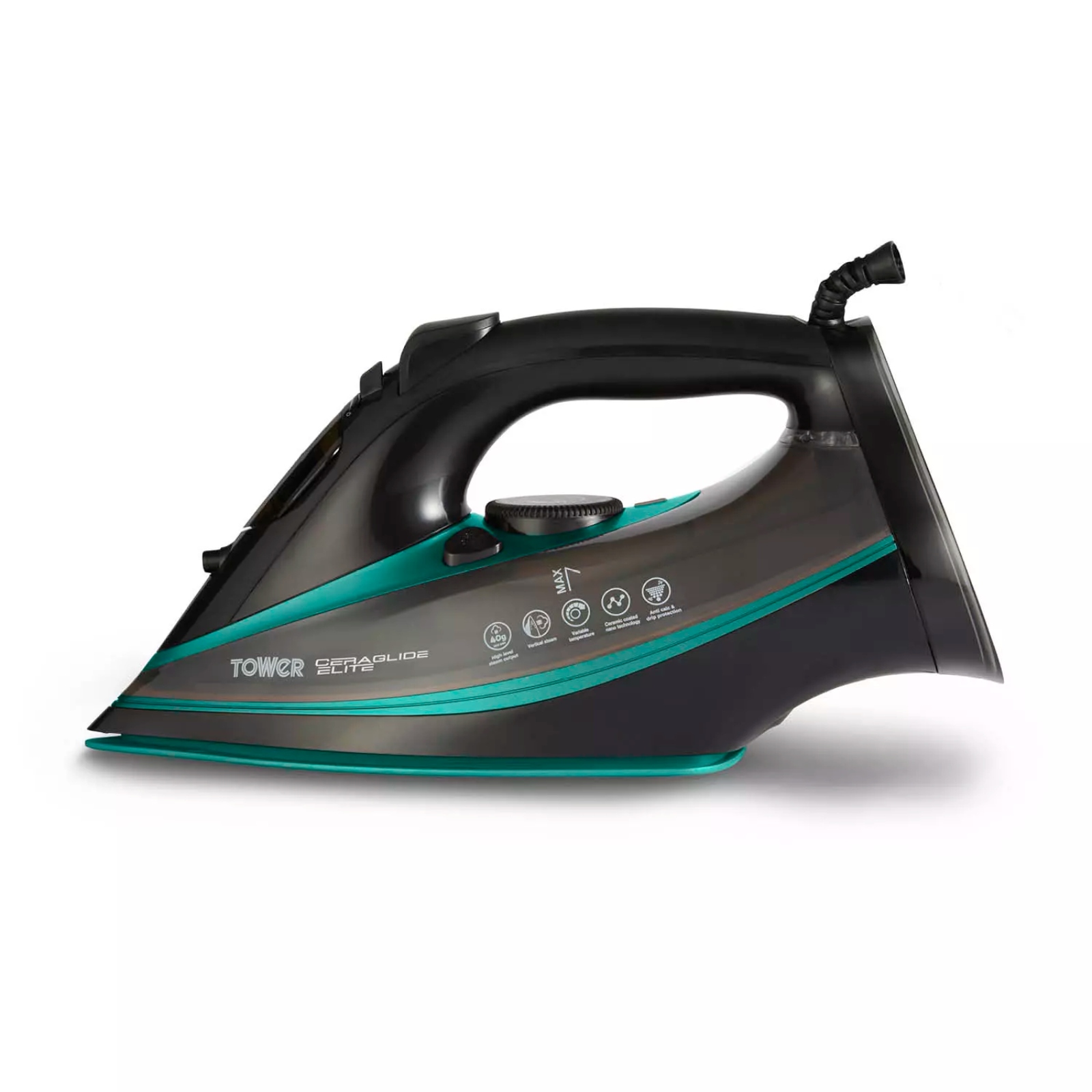 Glide through a full basket of ironing effortlessly with Tower’s Black & Teal Ultra-speed Iron. Offering a powerful 3100W output, the iron rapidly heats up to make short work of ironing, with a precision tapered tip for easy ironing around buttons and difficult areas. Featuring an impressive non-stick, scratch resistant CeraGlide ceramic soleplate, it effortlessly glides through ironing, making it 30% faster. The 40g/min of continuous steam ensures light work of most fabrics, whilst the powerful 180g steam boost tackles stubborn creases with ease. The large 360ml water tank prevents constant refilling and the anti-drip and self-clean functions prevents build-up of harmful scale and prolongs its performance.