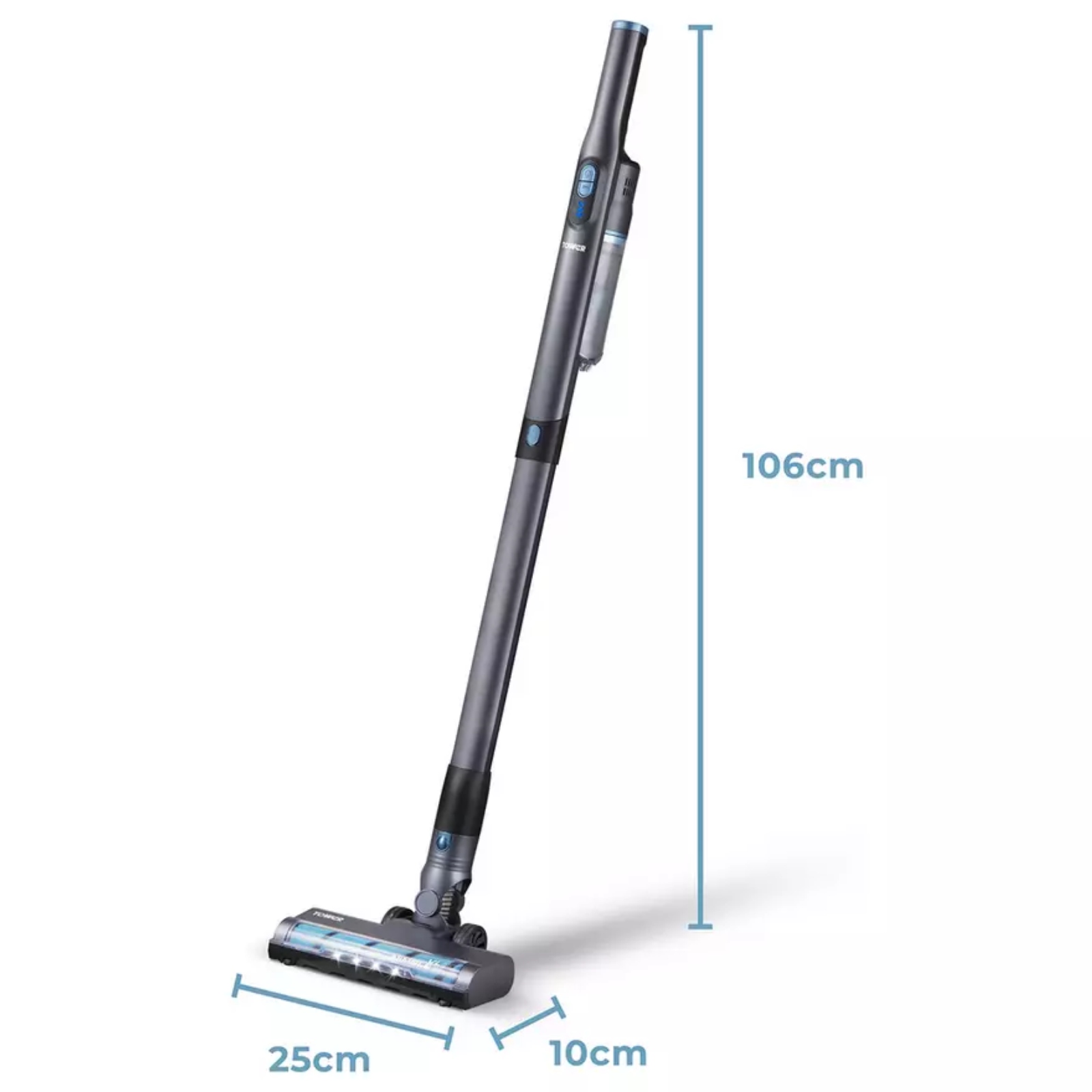 Enjoy powerful and efficient cleaning with the 300W VL60 NimbleVac vacuum. A powerful 2200MAH BLDC brushless motor ensures carpets and rugs are left spotless, with two speed settings of 10KPA and 20KPA that provide the right power when you need it. A 14.8V battery provides up to 35 minutes of uninterrupted cleaning on the low setting, with up to 15 minutes on the high setting. The ultra lightweight 2.3kg body allows the vacuum to be effortlessly manoeuvred around the house. The stainless steel HEPA filter helps to eliminate common allergens for a healthier home environment, whist a number of accessories, including a 2-in-1 nozzle, a sofa brush, velvet brush roller and single roller brush and tube, offer a more thorough and in depth cleaning experience. The 300ml dust tank can be easily removed for fuss-free emptying, whilst the LED lights will indicate the battery level when the vacuum is in use, or on charge