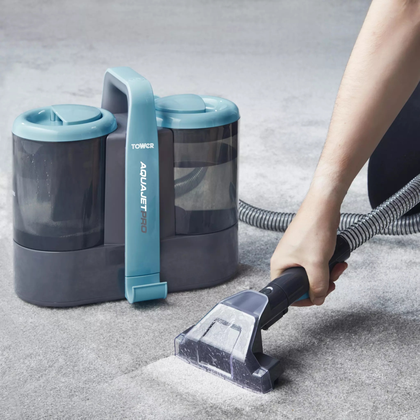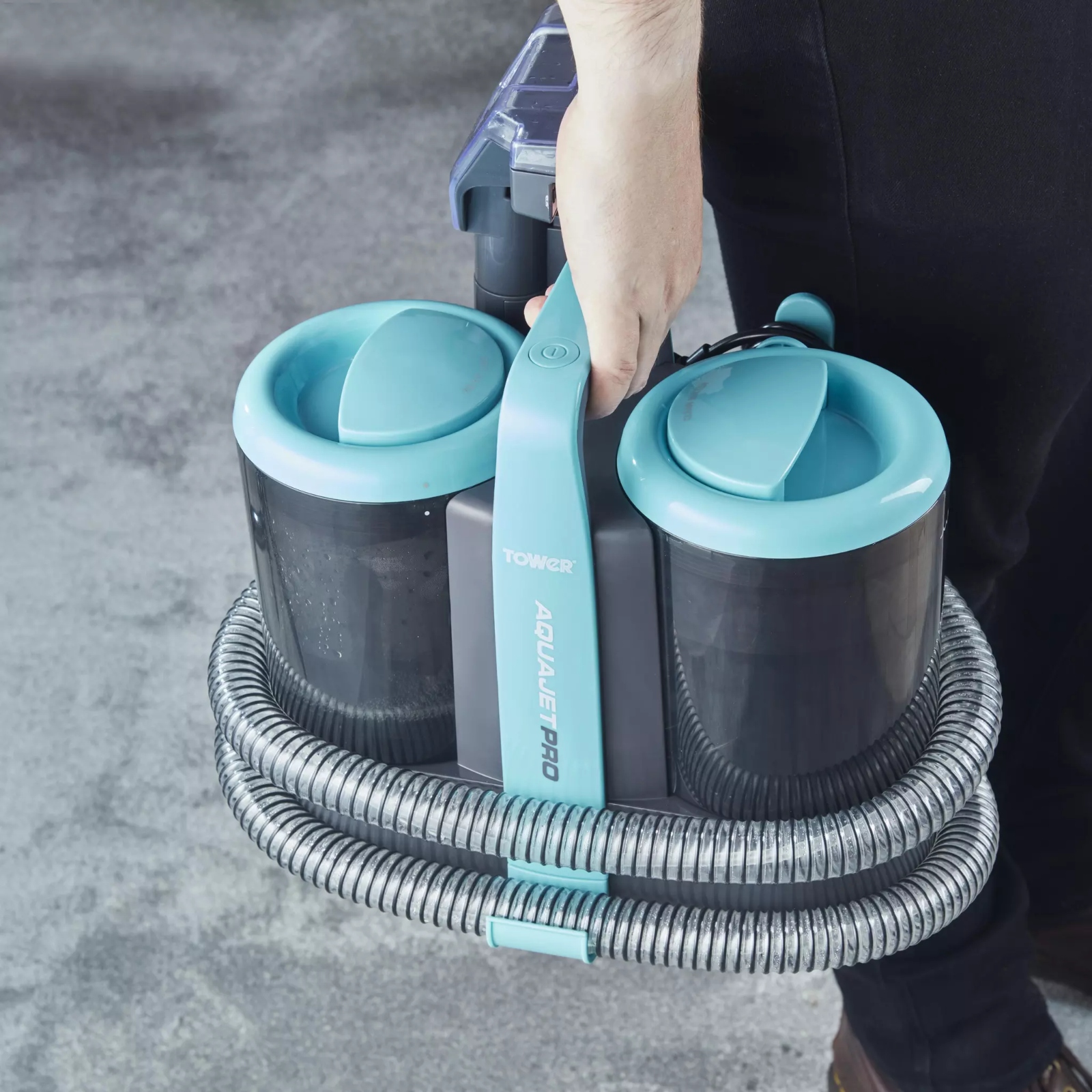 Breathe new life into carpets, floor, upholstery and car interiors with this powerful 450W AquajetPro Spot Cleaner from Tower. The powerful motor effortlessly agitates stubborn dirt and suck up spilled drinks to make cleaning simple and leave your home looking fresher. Featuring dual water tanks, the 1.5L clean tank and 0.8L dirty water tank capacities will let you breeze through cleaning without constantly refilling and ensure that you are consistently nurturing your floors with clean water. A high-powered performance removes stubborn stains with ease and penetrates deep into fibres to remove embedded dirt and refresh your carpet. Lightweight and portable by design, you can easily move from to room to tackle cleaning tasks across the home