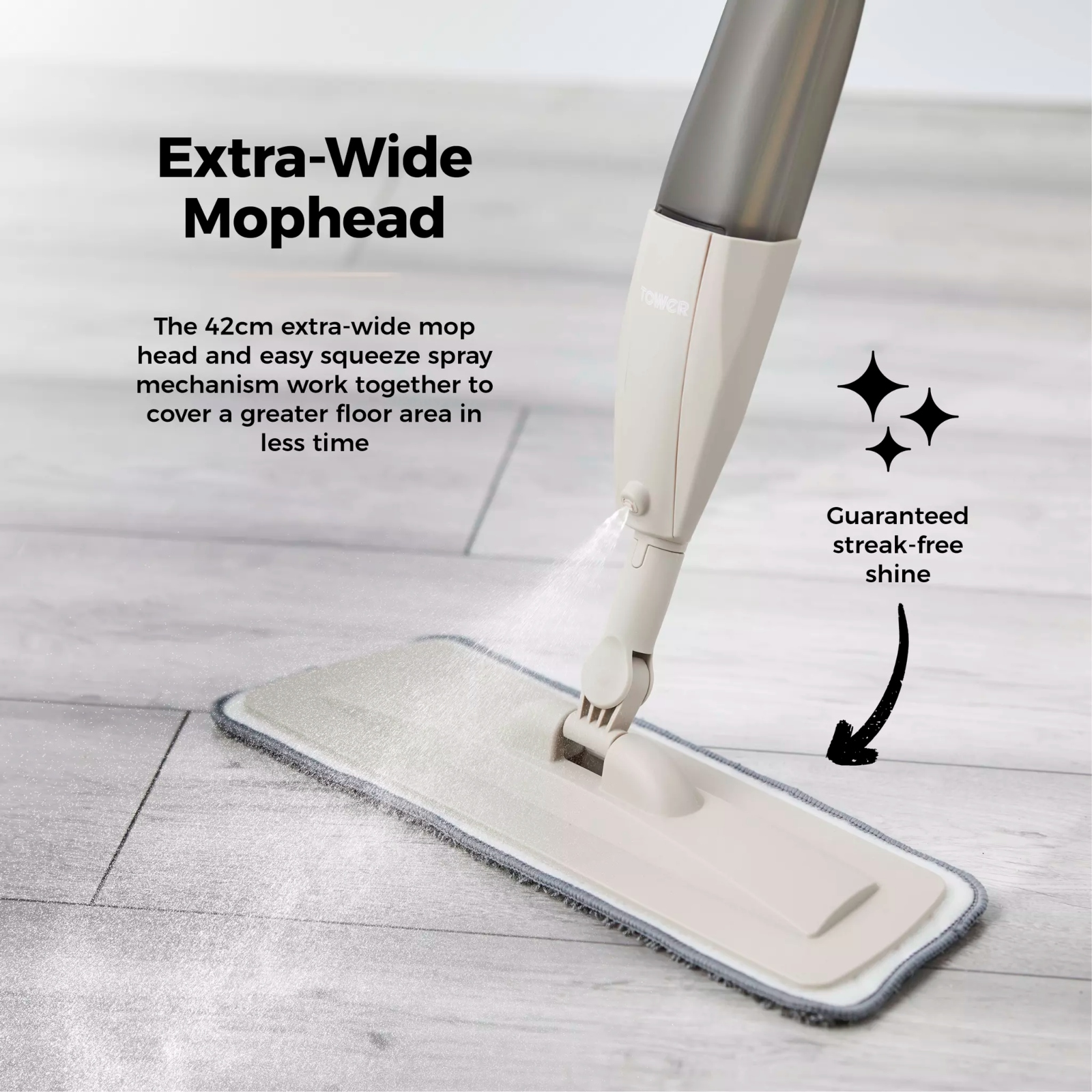 Say goodbye to the bucket and make mopping more convenient with this Tower spray mop. It includes an anti-leak bottle, which you fill up with floor cleaning solution and attach to the mop, and then you can start mopping up in no time compared to traditional methods. An easy squeeze trigger has been designed to allow you to spray as you go, letting you continue cleaning the floor without having to stop, which is ideal for larger cleaning tasks. The microfibre pad is perfect for a range of surfaces, including tiles, laminate and wooden floors, removing the excess dirt and grime with ease. An additional pad is also included, letting you carry on cleaning while the other one is being washed, so you aren’t behind on your housework. After a few uses, the cloths can collect a lot of excess dirt and hair, but thanks to the microfibre cleaning tool, you can remove all the dirt so the cloths are ready to use again.