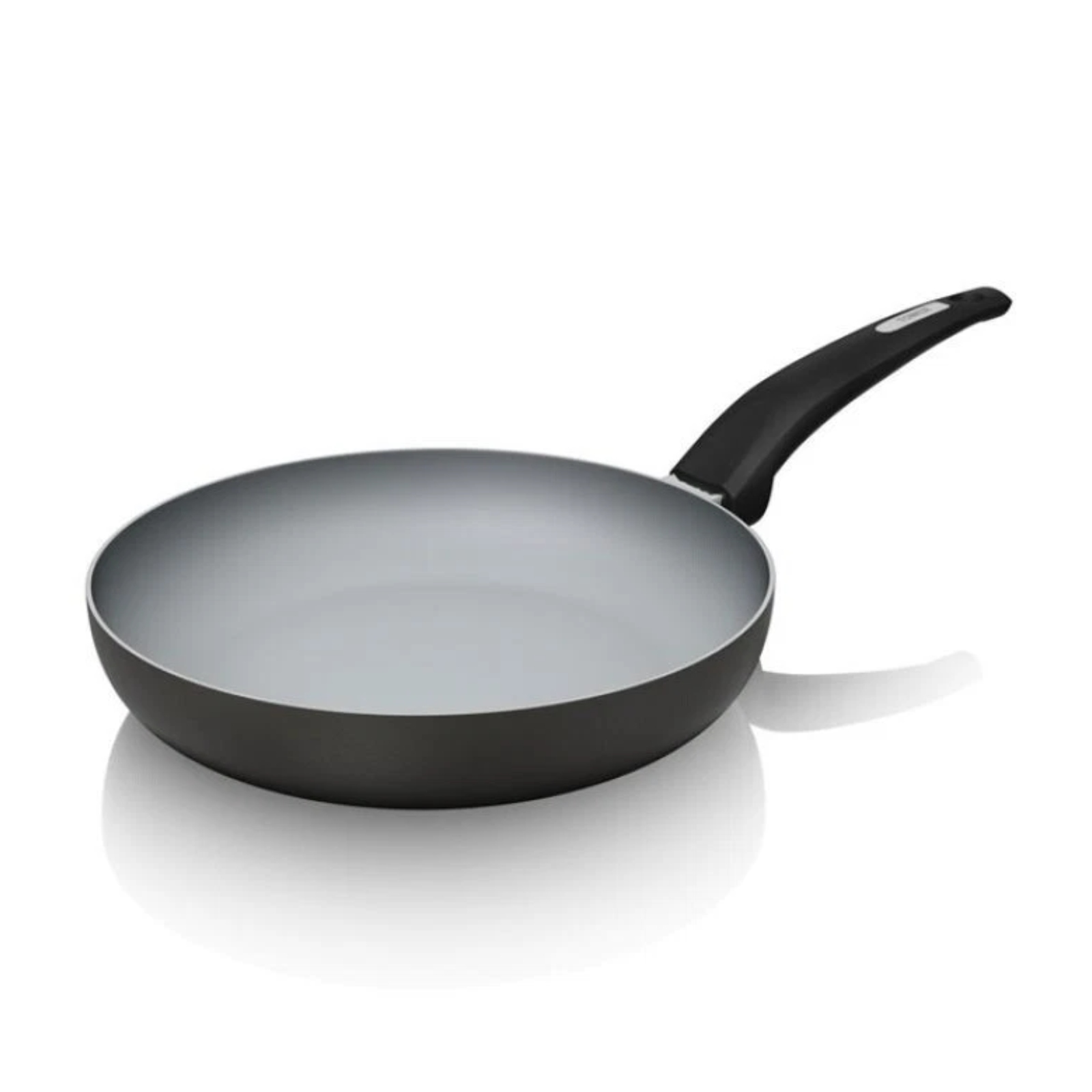 This ceramic coated frying pan, changes to white when at optimum heat. It has Stay Cool handles with soft touch coating. Suitable for all hobs including induction. Features: Frying pan diameter 24cm, cool touch handle. Easy clean with non stick coating. Scratch resistant. Suitable for the following hob types: gas, electric, halogen, ceramic, induction and solid hotplate. Dishwasher safe