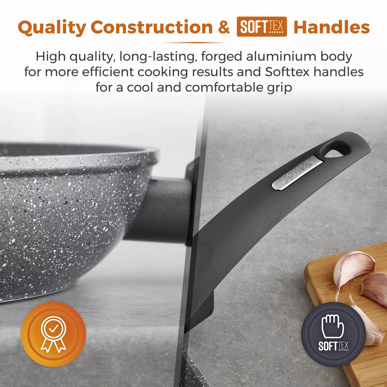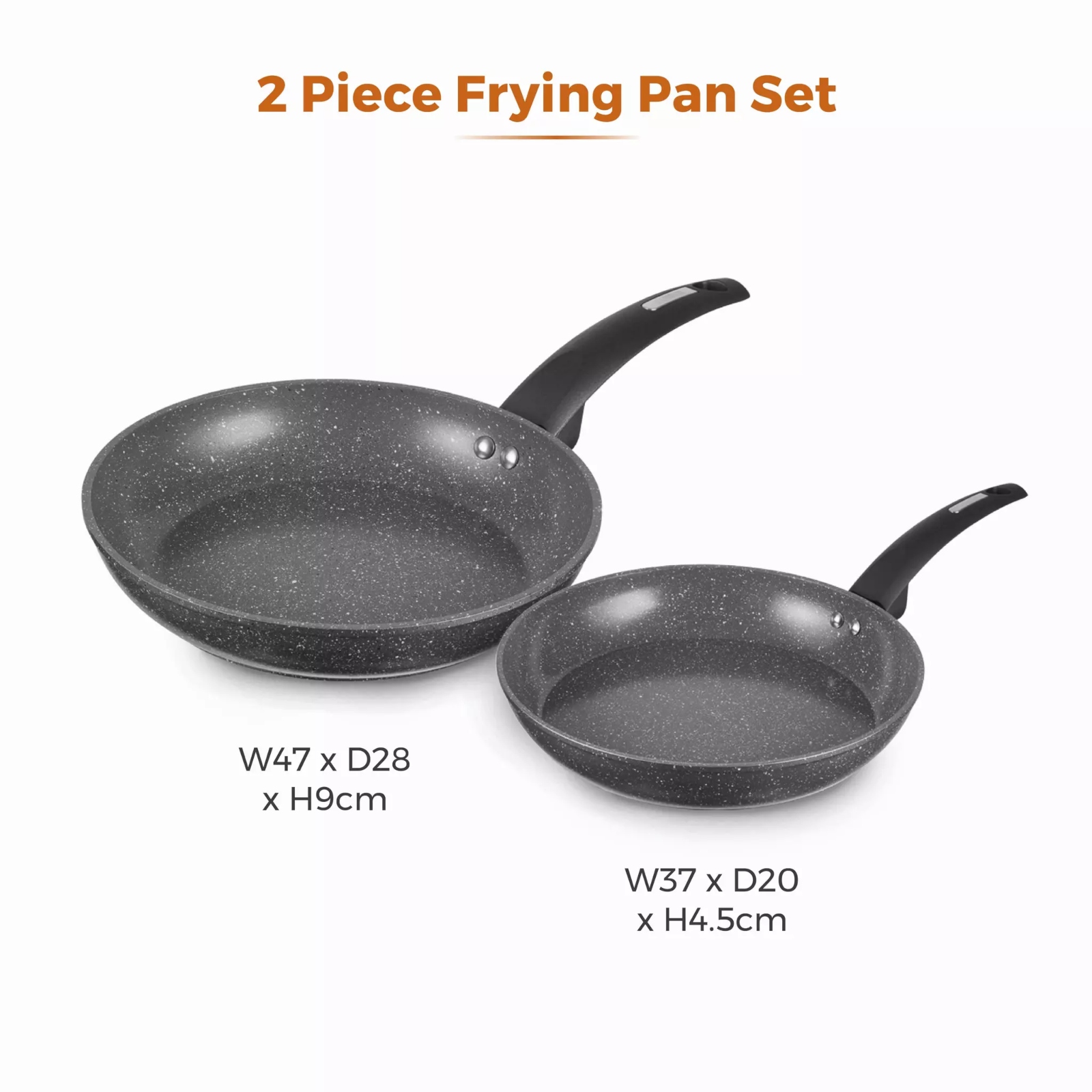 Create delicious hearty English breakfasts, an authentic stir-fry and even desserts such as pancakes with the Tower 2 piece frying pan set. With thick forged aluminium bodies in a lightweight design, these frying pans offer all the benefits of enhanced durability whilst also enabling easy manoeuvrability around your kitchen, suitable for all users. The 20/28cm diameters make them ideal for one or all the family while the silicone soft touch handles offer comfort and control during use. Suitable for all hobs including induction, these sets of frying pans require only a simple hand wash to maintain its optimum performance.