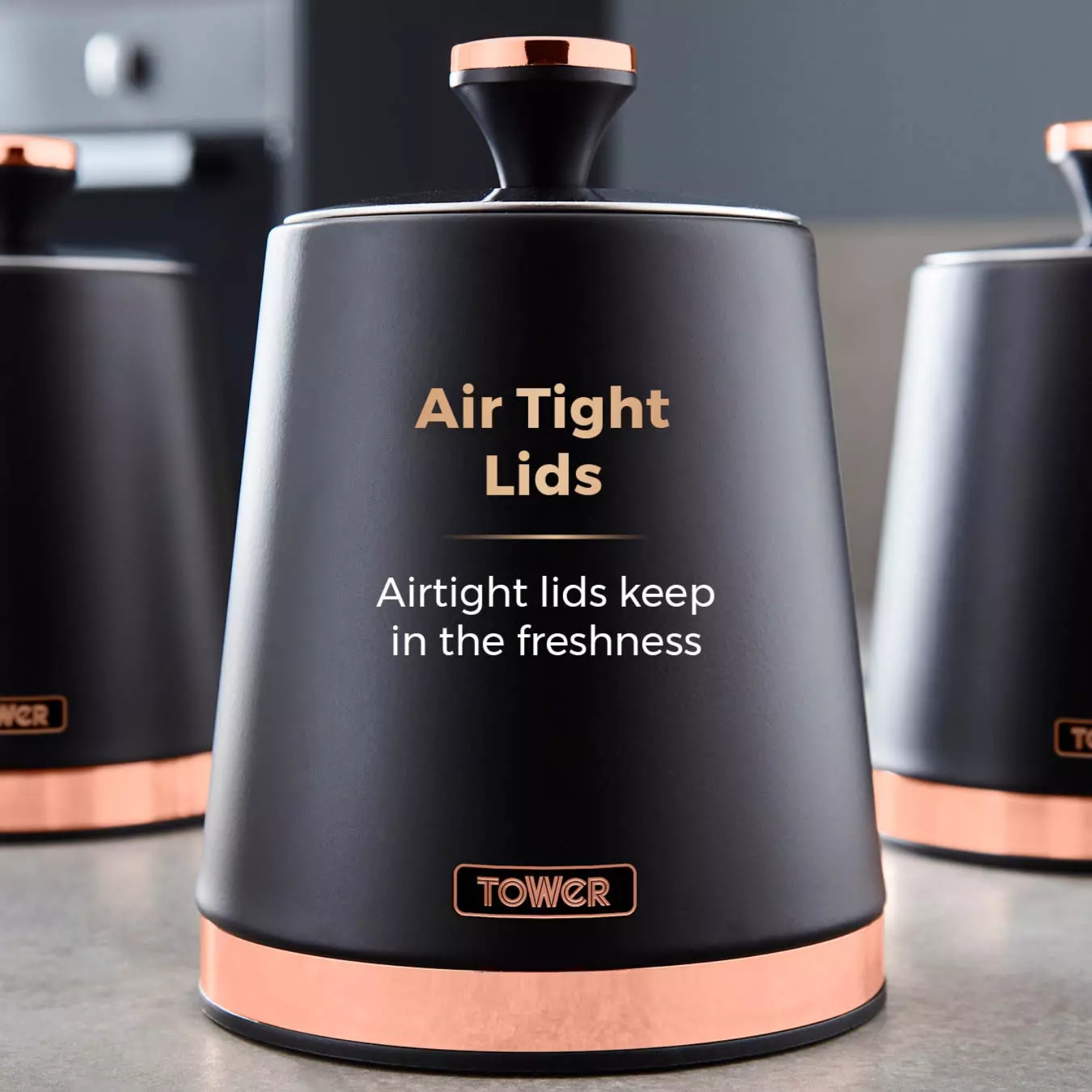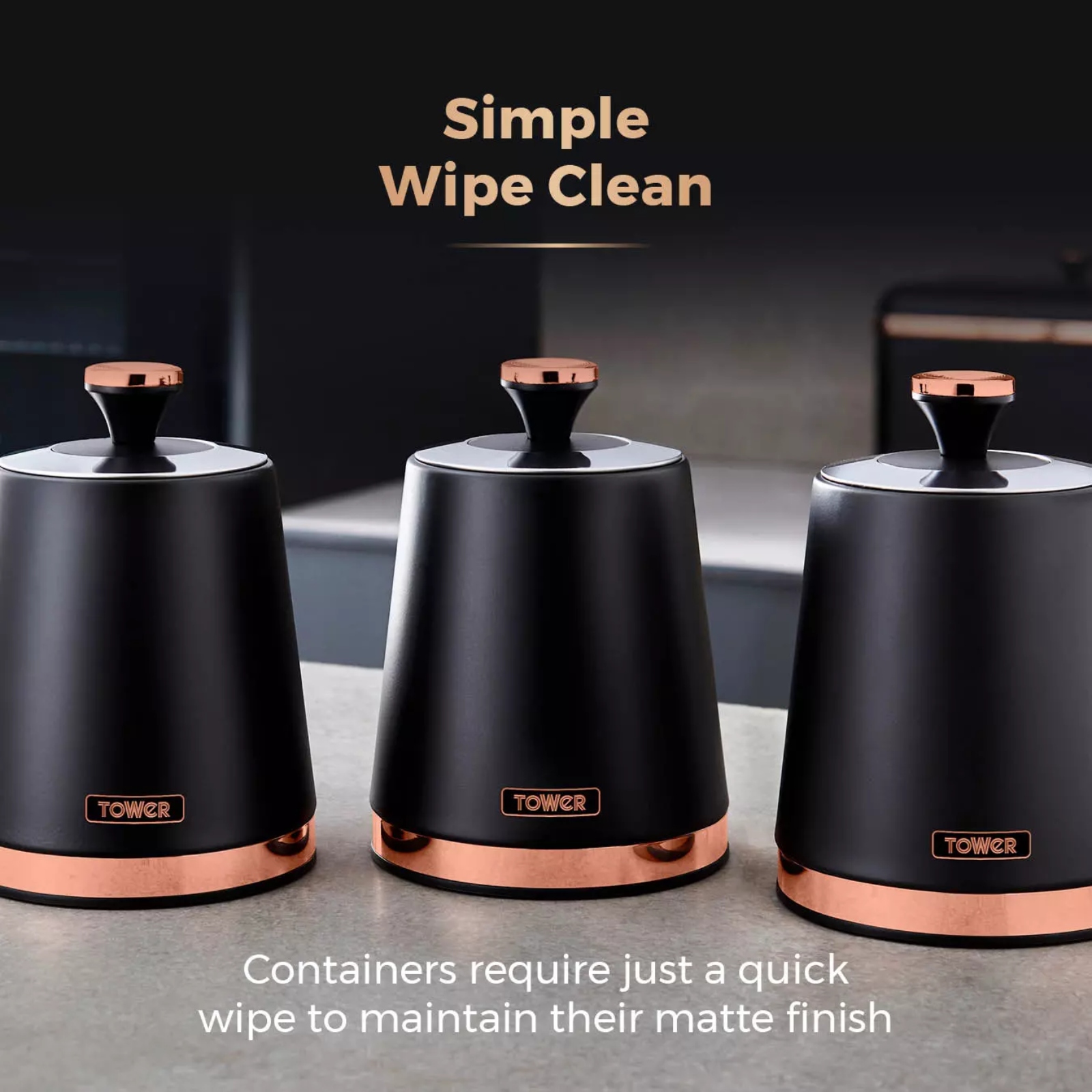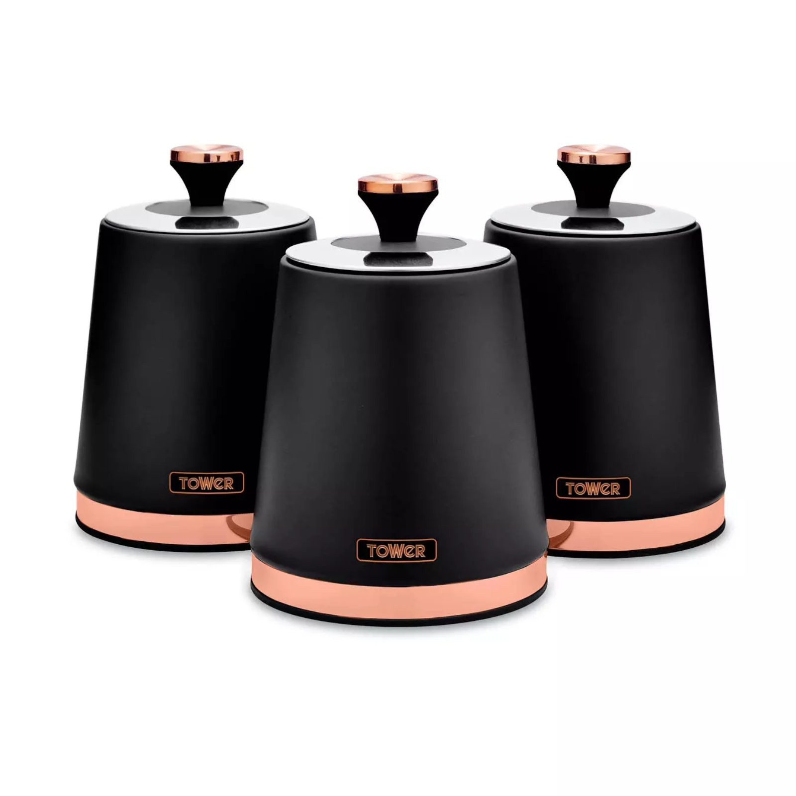 Lock in the freshness of your favourite hot beverages and other foods with Tower’s tasteful set of three Cavaletto canisters, ideal for storing anything from coffee, sugar, and tea, to dry pasta and rice on your countertop. The steel framework enhances its durability, keeping products at quality standards. Each of the containers has a 1.3 litre capacity to store your loose ingredients in a tidy manner, preventing cluttered kitchens. With the removable airtight lids, your favourite ingredients will be kept fresh for longer and makes it easy to replenish them. The contemporary style emphasises sleek flair with its tasteful matte black finish with rose gold accents. Complete the set with the Cavaletto collection to add a modern touch to your kitchen.