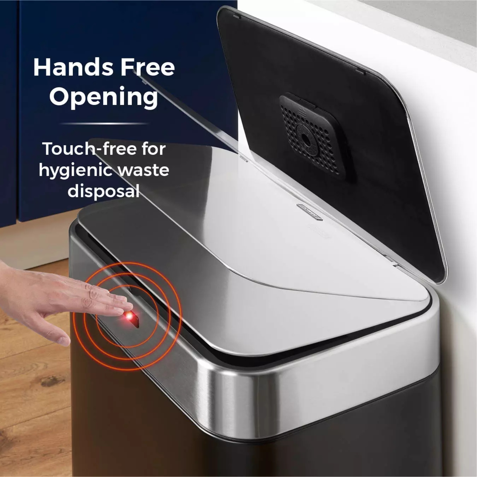 Hygienically dispose of your household waste with the 75 litre rectangular sensor bin. Featuring hands free opening using motion sensor technology, you can dispose of household waste hygienically with one swift hand motion above the bin lid for automatic opening, complete with a soft-close function to minimise noise disruption.