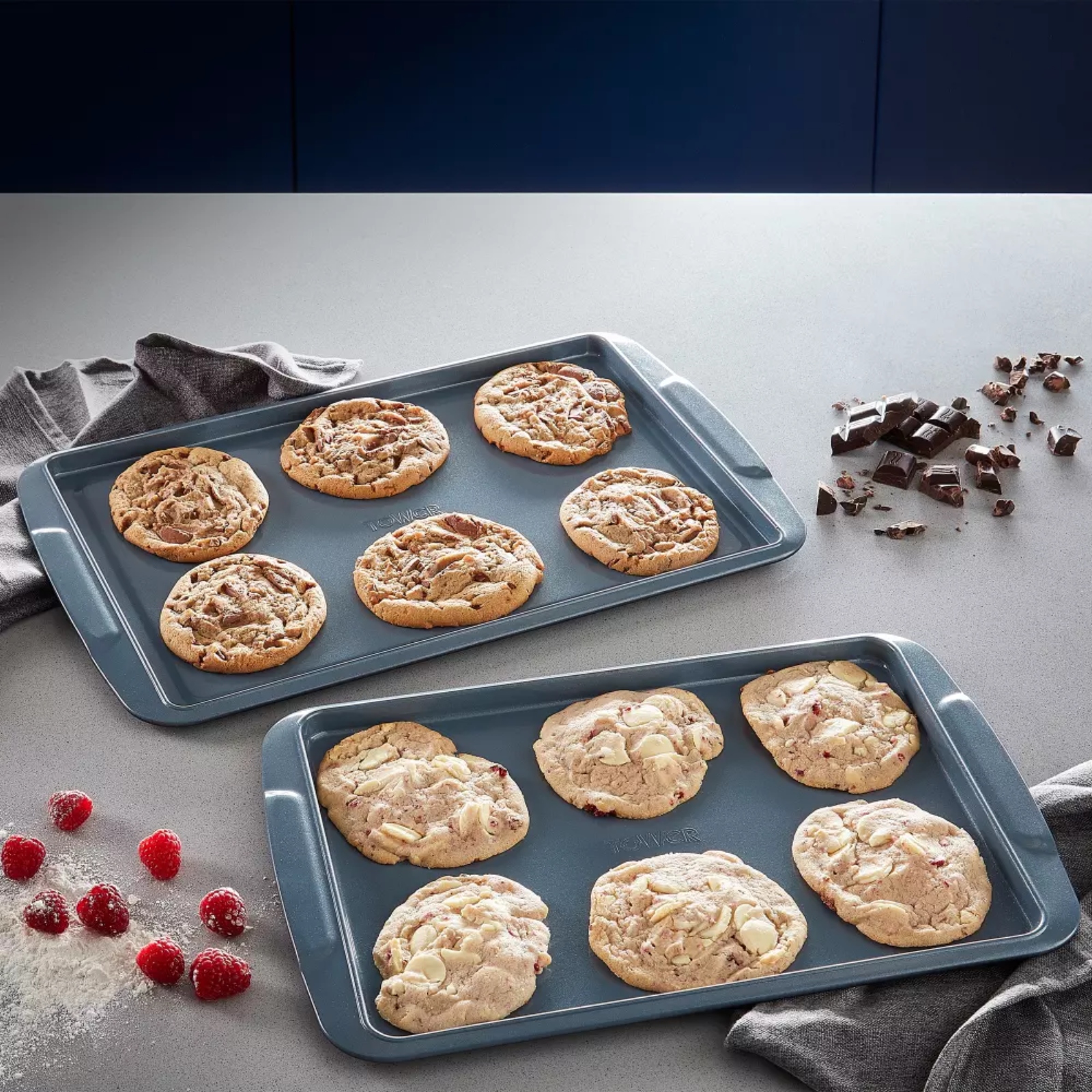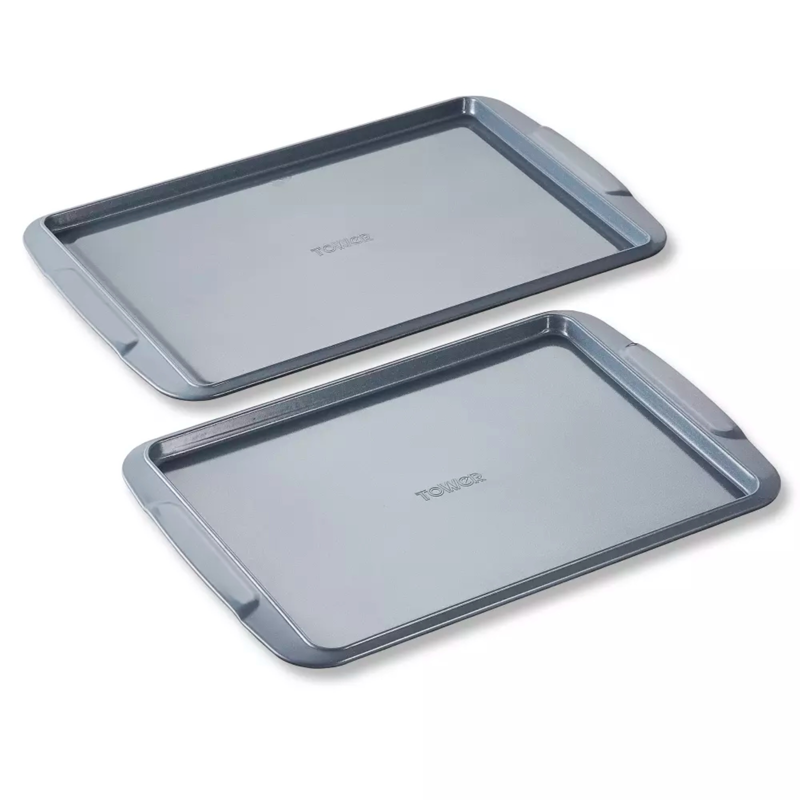 Enjoy cooking your favourite dishes with Tower’s 2-Piece Baking Tray Set, featuring a Cerasure ceramic non-stick coating that is 5x stronger and features superior non-stick qualities for easy food release – requires little to no oil, so you lose the fat not the flavour. The varied sizes of 39cm & 43cm make this tray set perfect for baking and roasting a wide range of delicious dishes, perfect for every day. The high quality construction helps to provide even heat distribution to ensure your food is cooked to perfection. The robust body is oven safe up to 230°C, and is made from a highly durable material, making it hard wearing & able to withstand the demands of busy modern kitchens. Wide rolled edges allow for a more comfortable grip & safer handling during use, whilst enhancing the tray’s strength for long-lasting use.