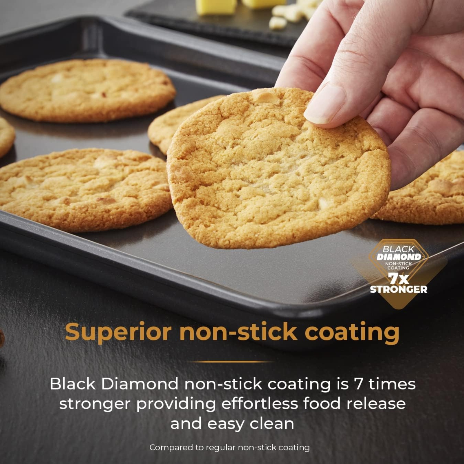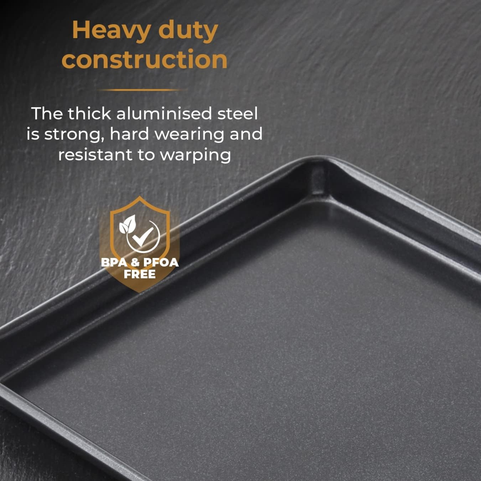 Make light work of any recipe using Tower’s Precision Plus Medium Baking Tray. Its heavy-duty construction of aluminised steel is resistant to warping under high temperatures; internally reinforced with Black Diamond non-stick coating for an effortless release. Its high abrasion resistance makes the tray safe to use with metal utensils without damage while . Versatile by design, the baking tray is suitable for use in the oven up to 260°C/500°F as well as the fridge, freezer and dishwasher.
