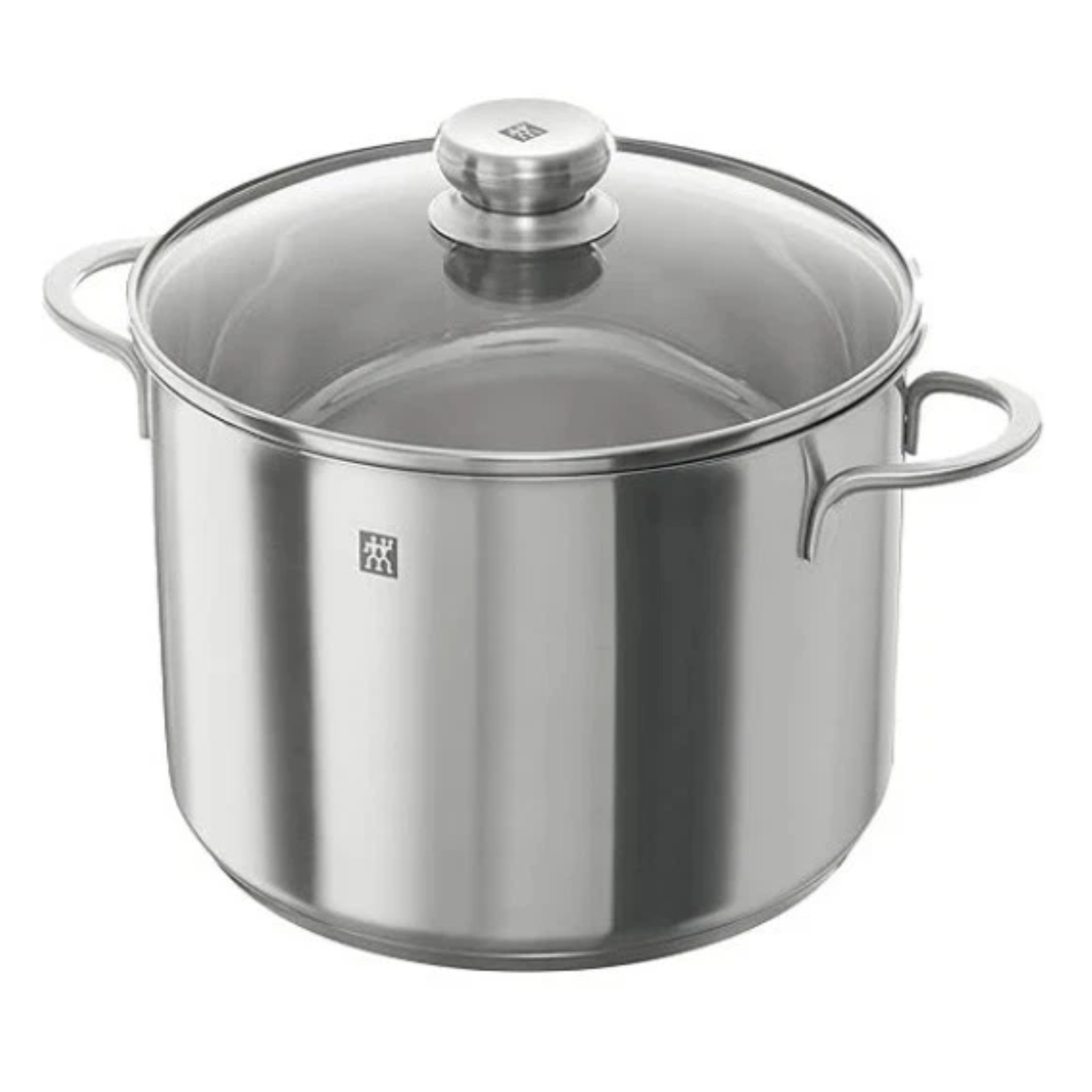 The Nova 24cm Stockpot from Zwilling is designed to last, with scratch-resistant stainless steel and a triple-layer base with an aluminium core for excellent heat distribution. The 24cm diameter and 7.8L capacity provide plenty of room for batch cooking of meals like soups, stews and vegetables. The glass lid fits tightly to the pot to ensure energy-efficiency and the folded edge enables precise pouring. Suitable for all hob types, including induction.